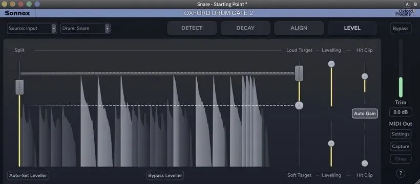 Oxford Drum Gate 2 引入了一种自适应共振衰减算法,该算法利用源自 Claro 的共振检测技术,将每次鼓击的共振衰减与周围的混响分离,同时保持瞬态信号完整。