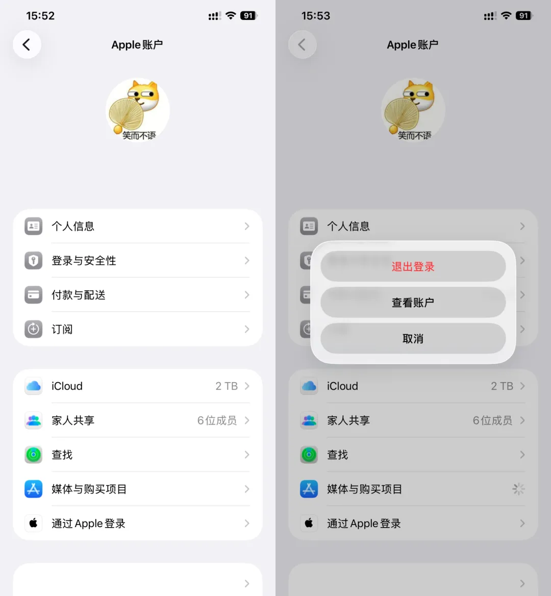如果用户要登录其他账户需要进行如下步骤:转到设置、iCloud (点击头像)、媒体与购买项目、退出登录,在退出当前账户后才可以重新登录其他账户,这里的选项其实早就有但通常用户会直接在应用商店里切换,而不是转到设置里切换账户。