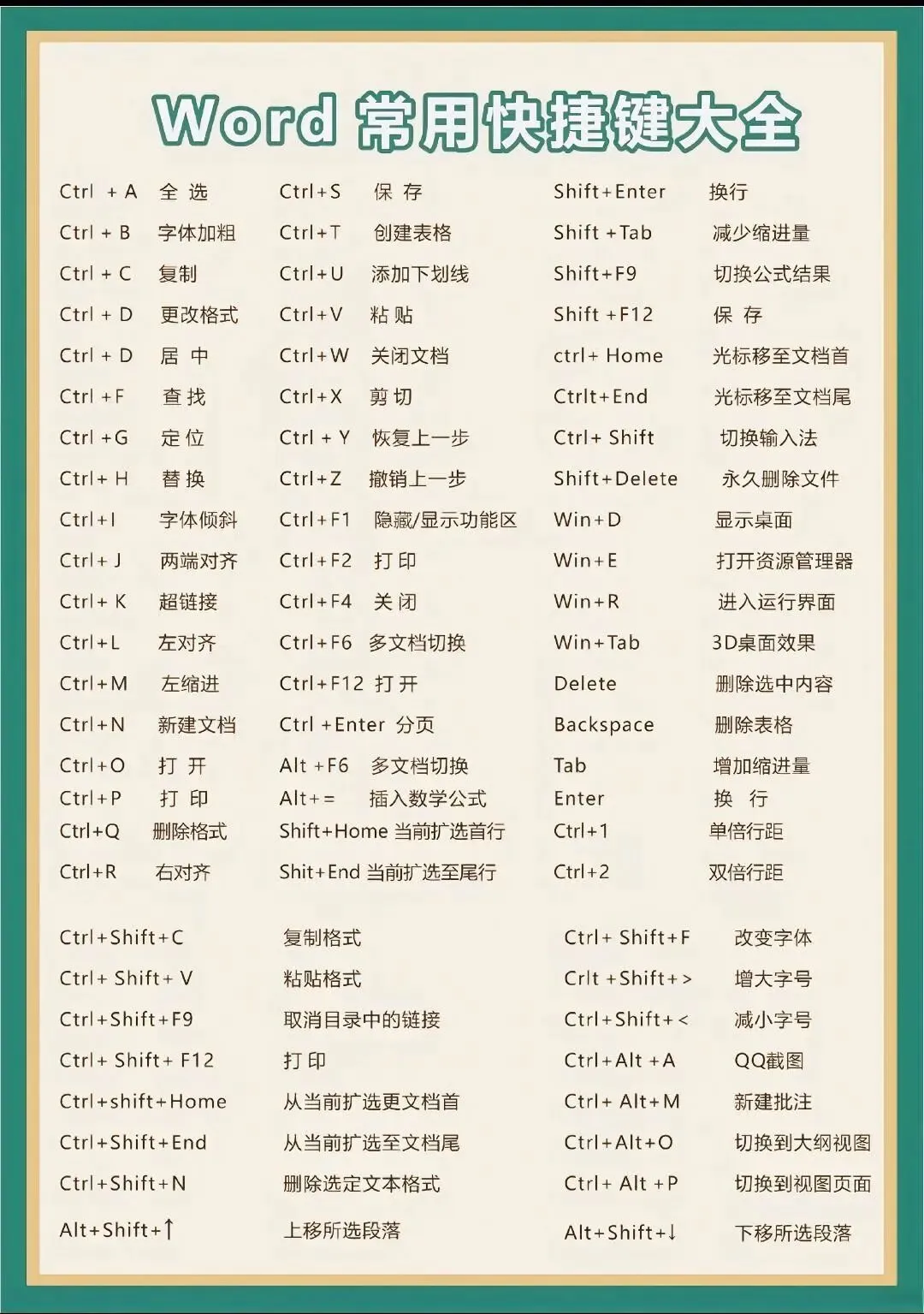 附:Word常用大全(关注后台回复“word”领取原图)
