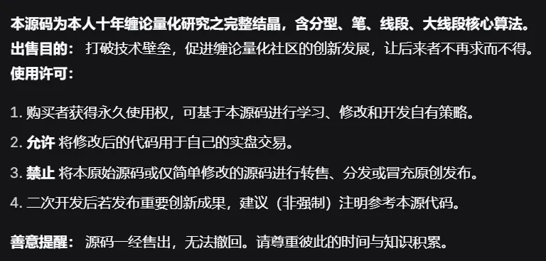 除了量化策略不公开,缠论基础画线指标的价格你说个数字……