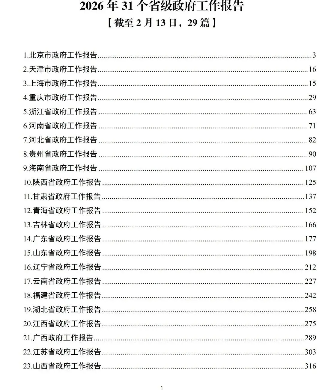 【共275篇,29个省份Word版已发布】2026年全国省、市、县(区)各地《政府工作报告》汇编合辑【2月21日,新增10篇】