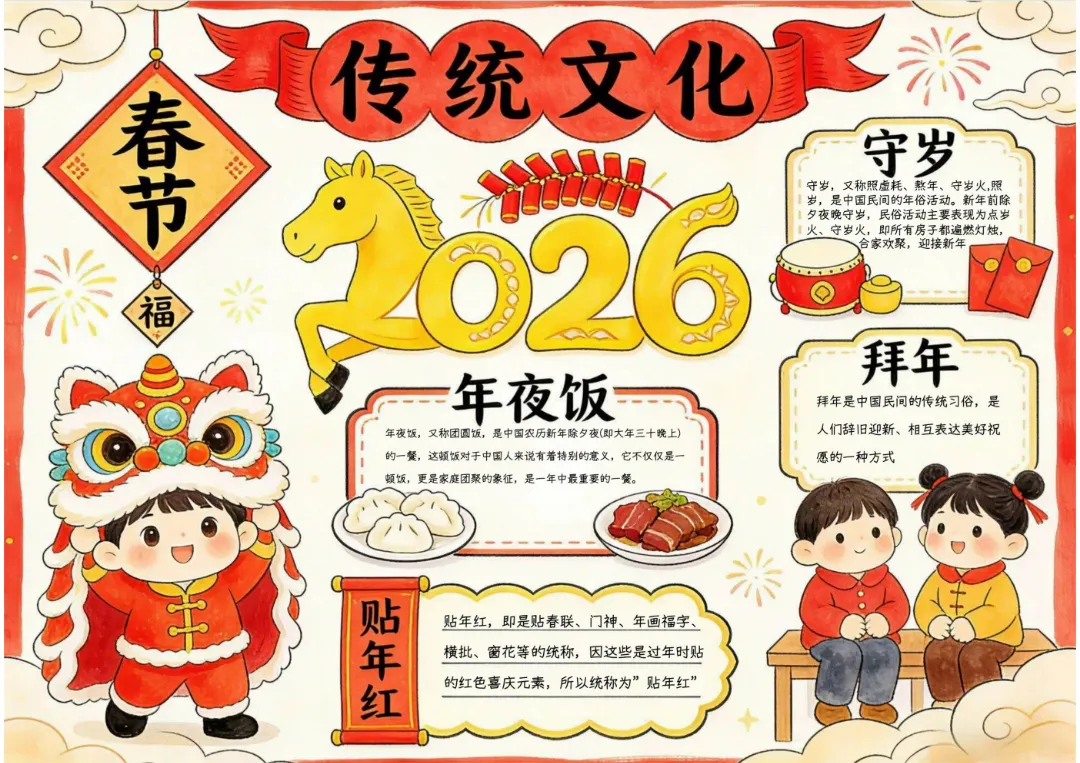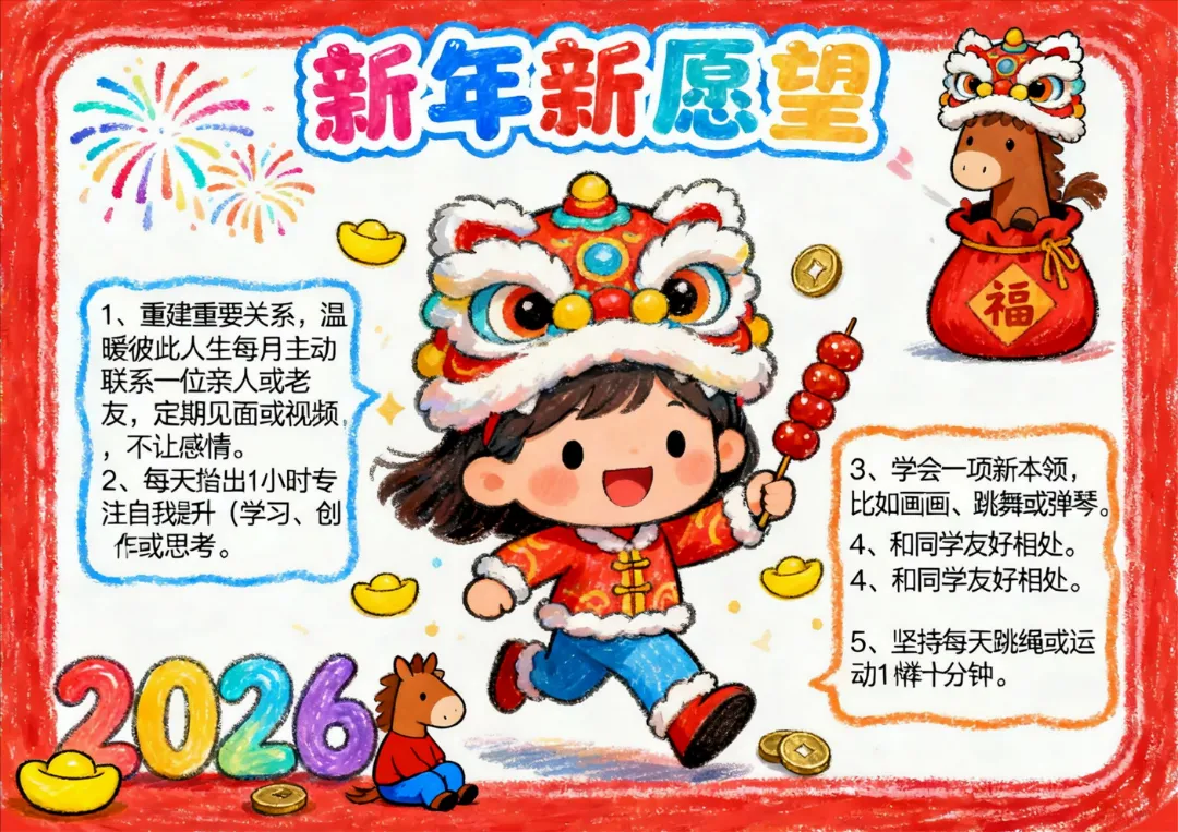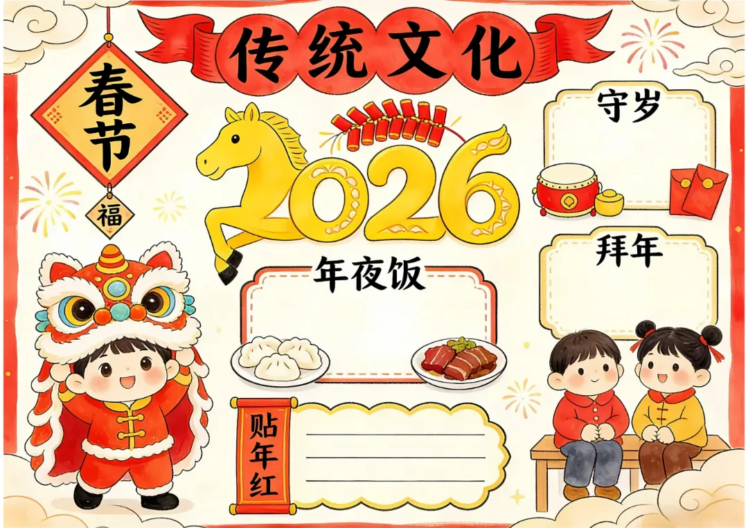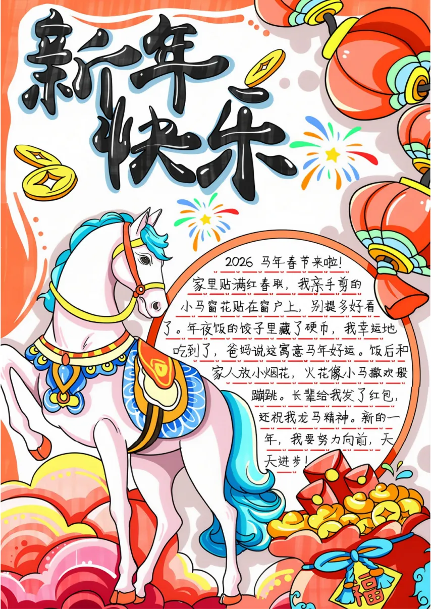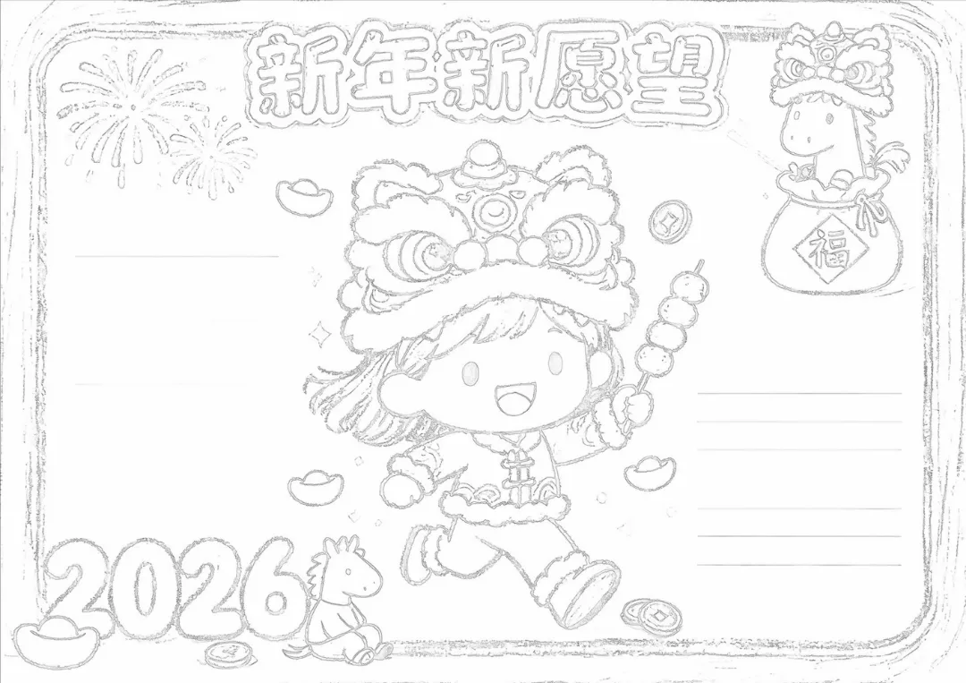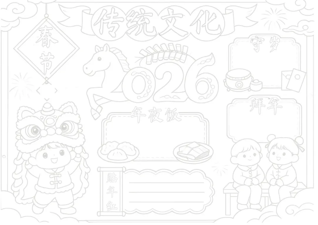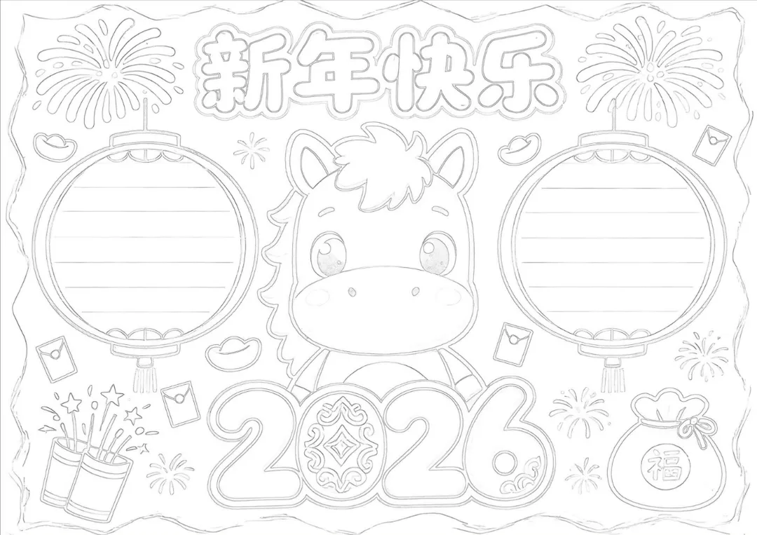 今天给家长们分享的是:26年春—马年新年手抄报+黑白线稿‖高清电子版可打印