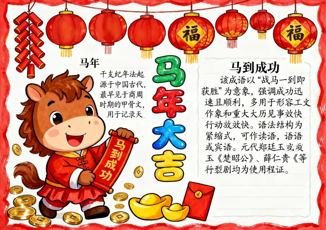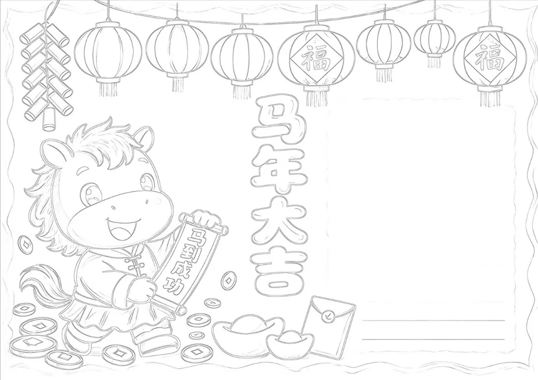 26年春—马年新年手抄报+黑白线稿‖高清电子版可打印