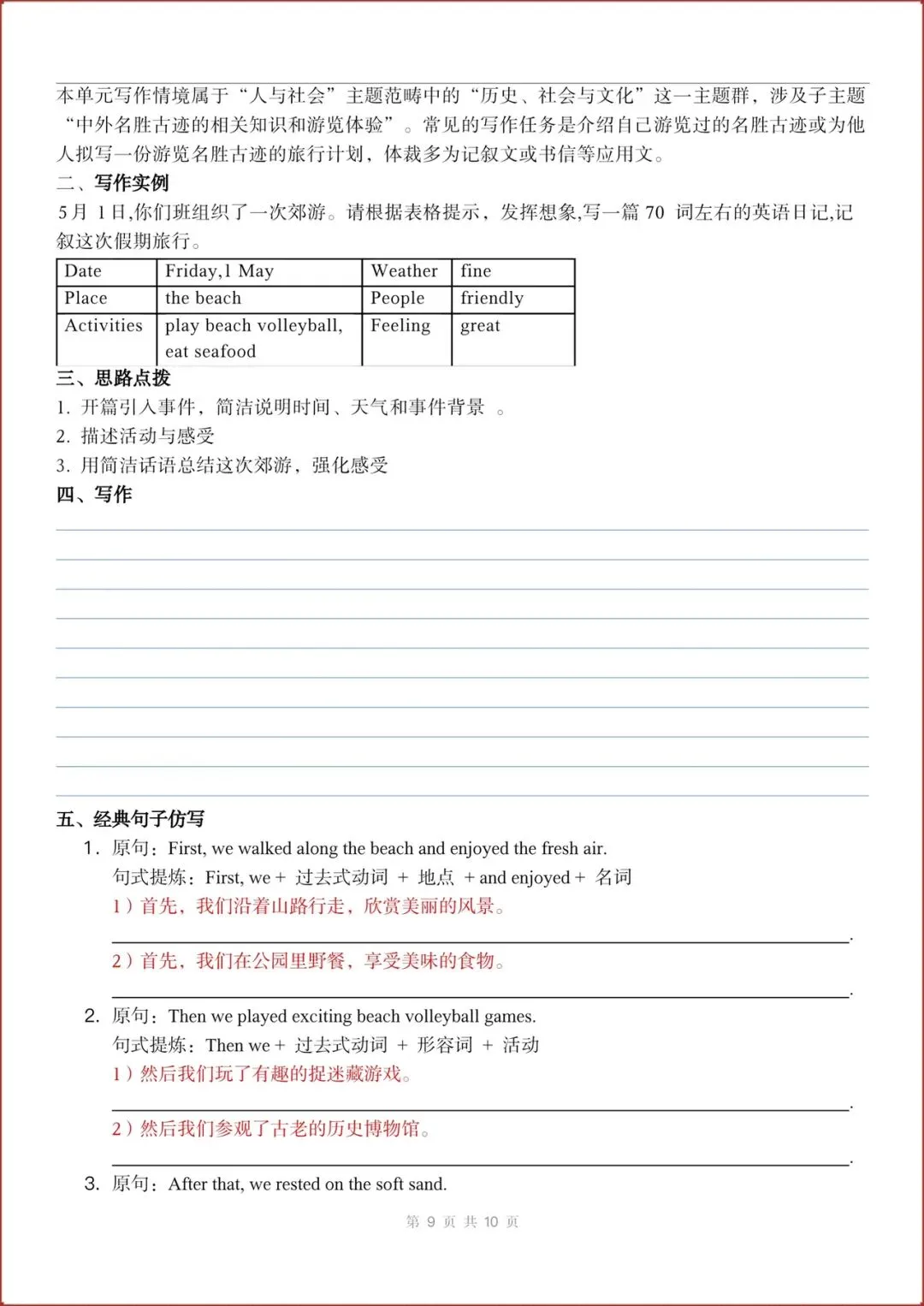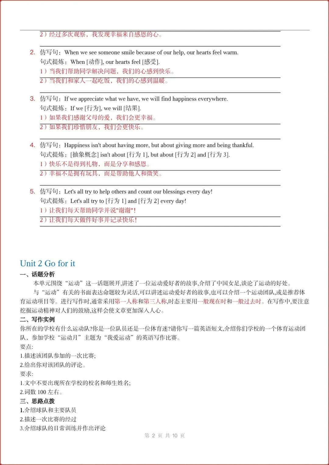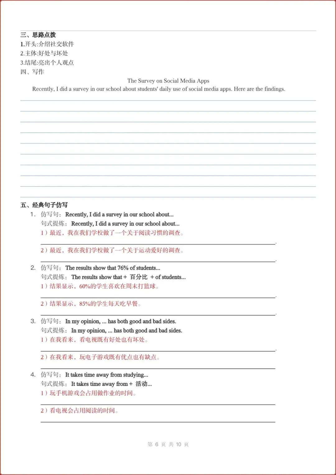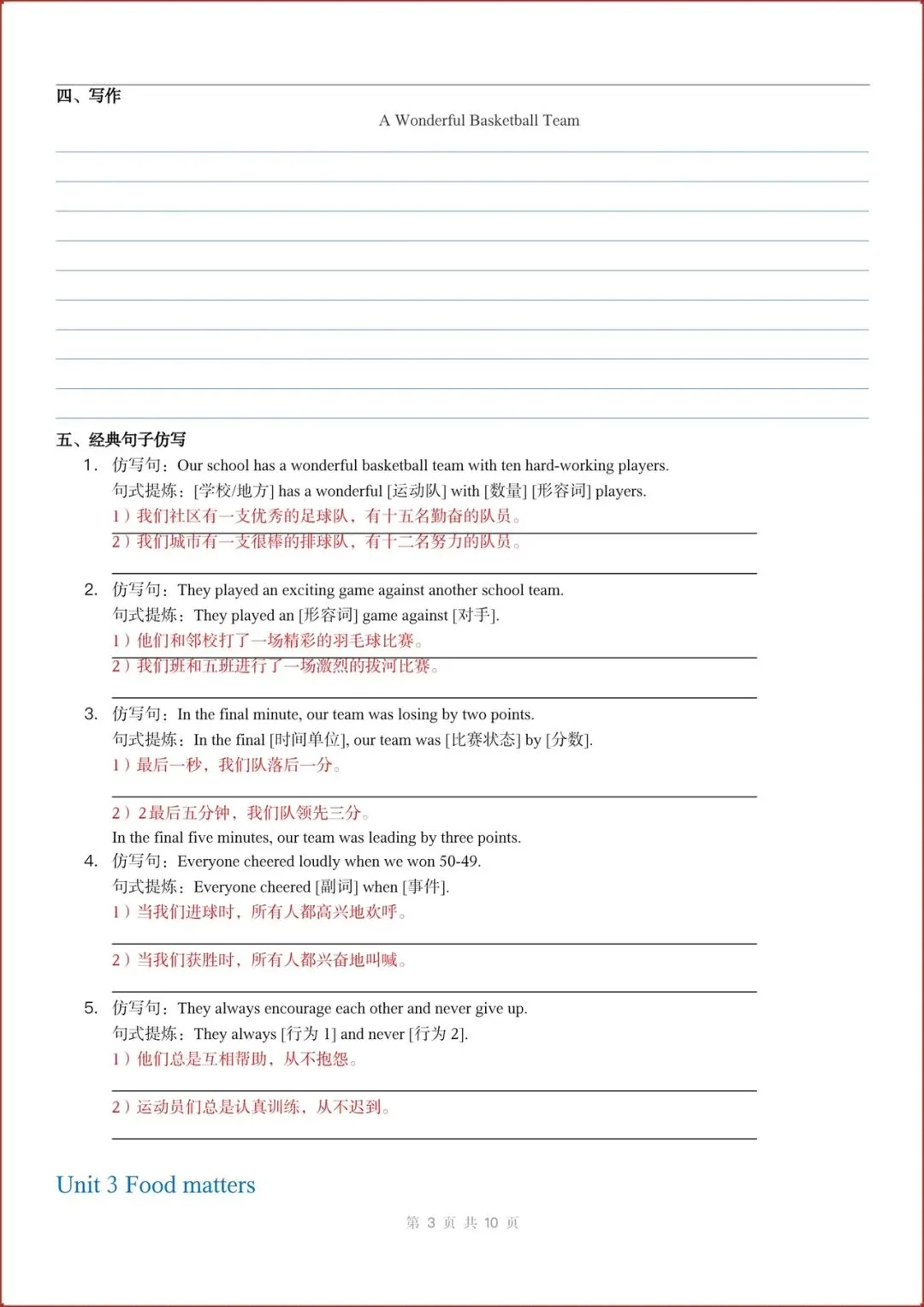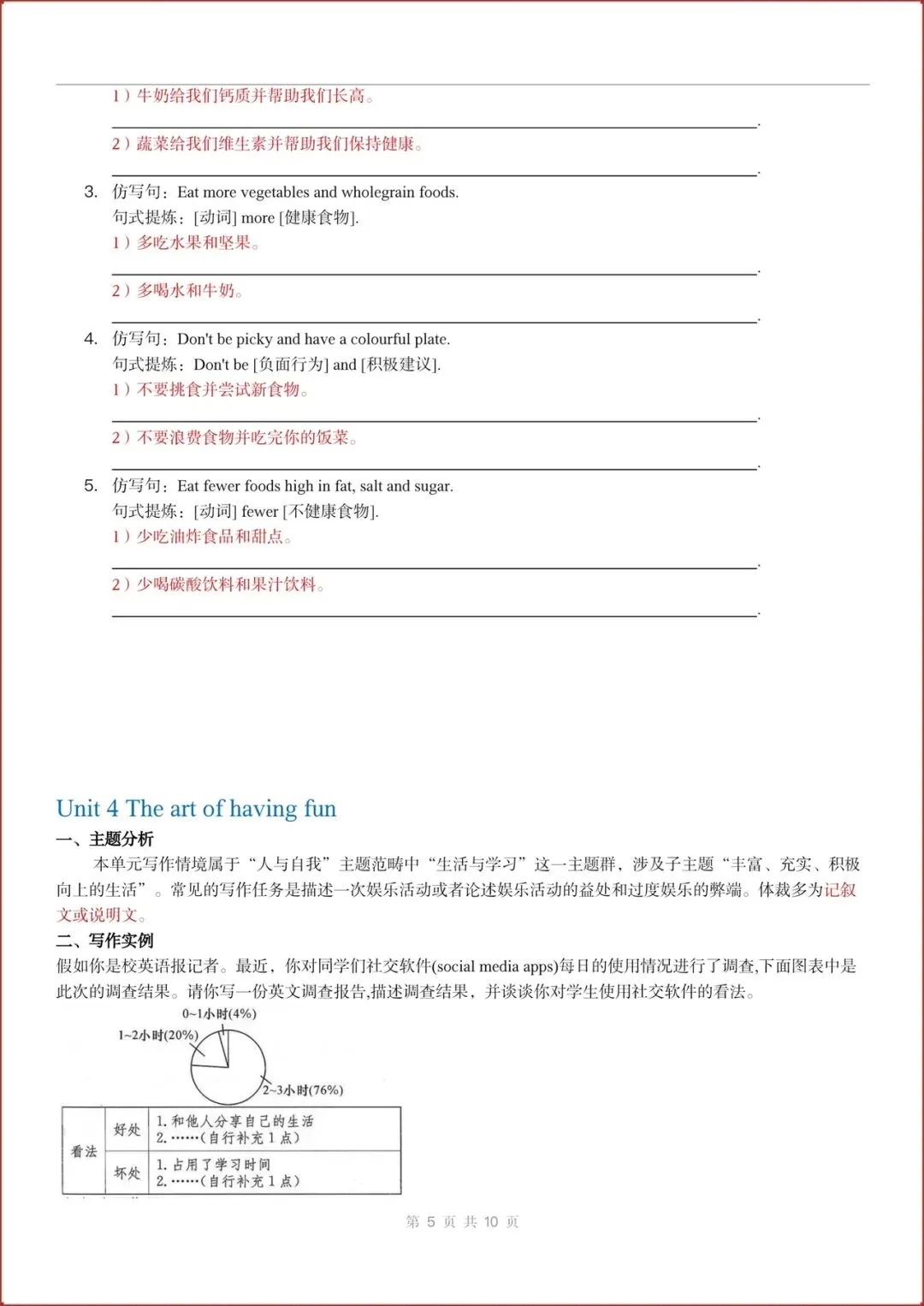 2026春新(外研版)七年级下册英语主题作文与句子仿写练习(Unit1-6全)含答案,电子版可打印!