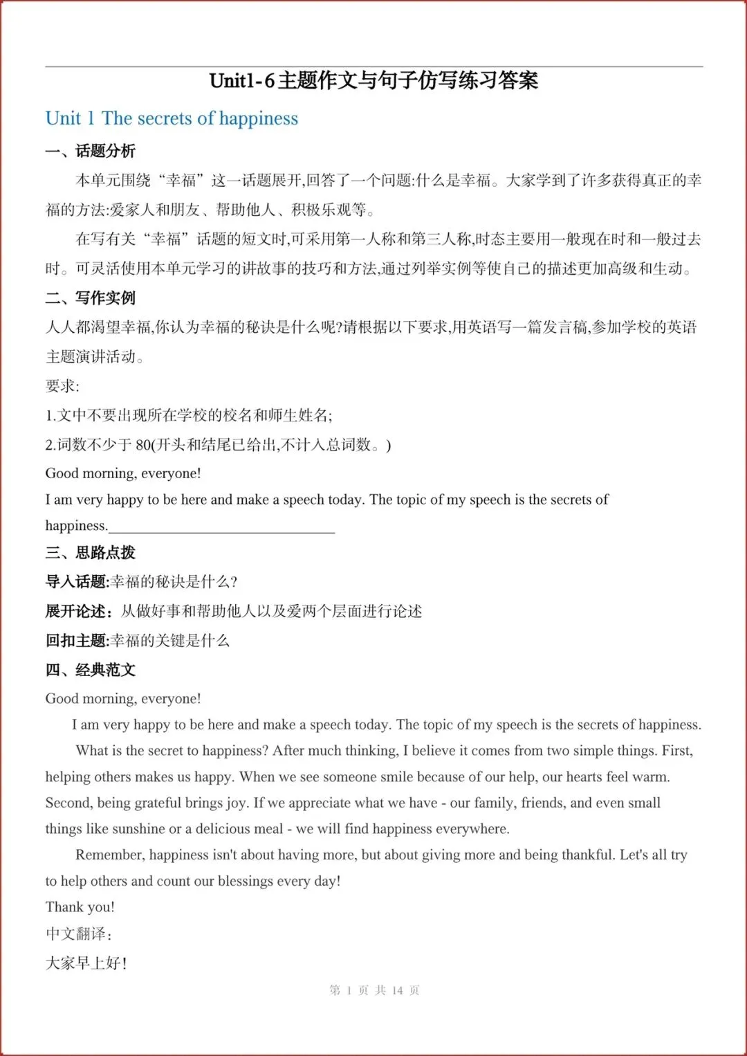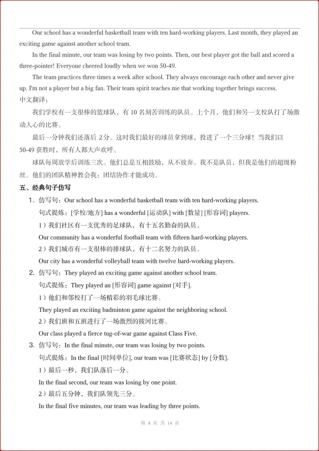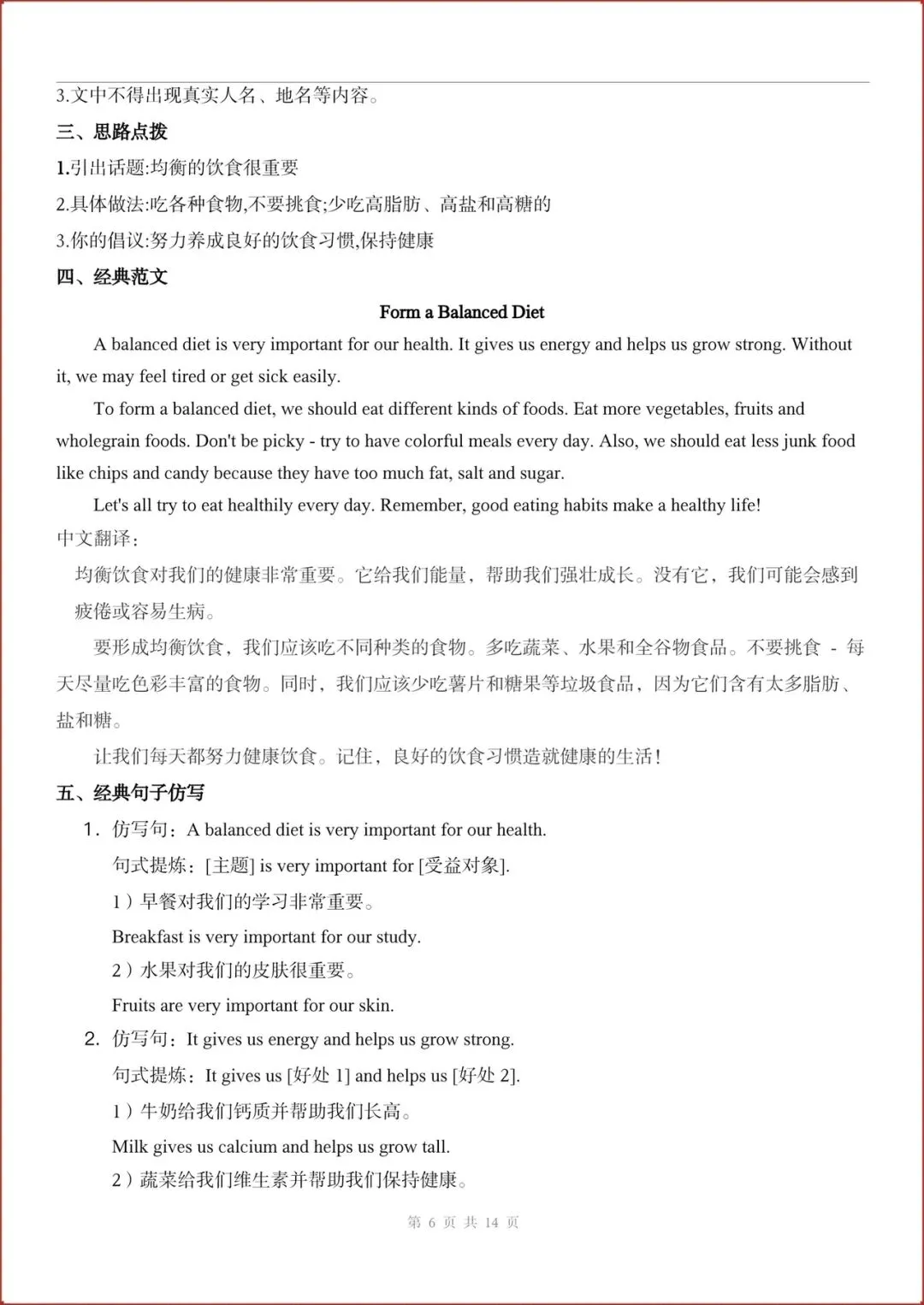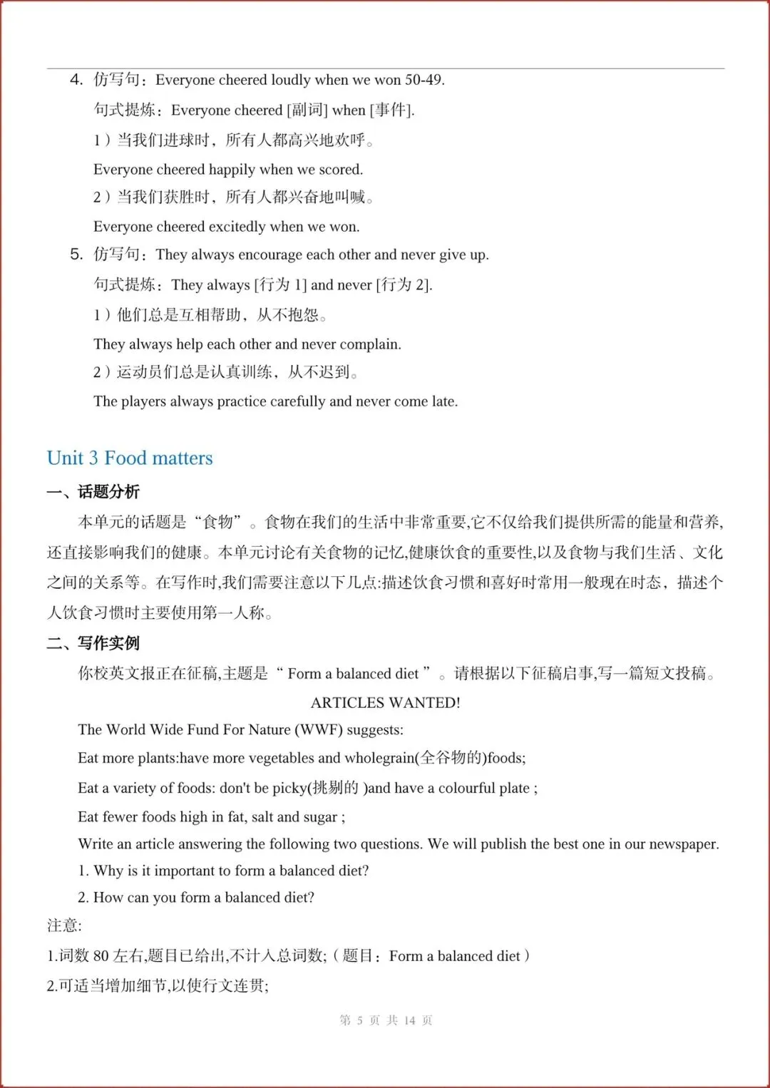 2026春新(外研版)七年级下册英语主题作文与句子仿写练习(Unit1-6全)含答案,电子版可打印!
