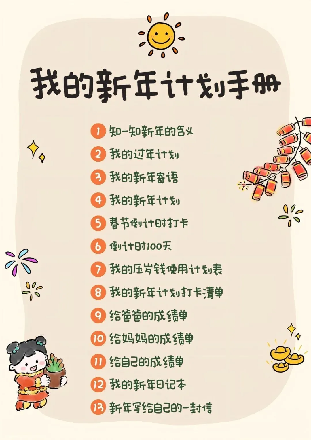 《压岁钱使用手册及统计表/新年计划手册》电子版可下载打印