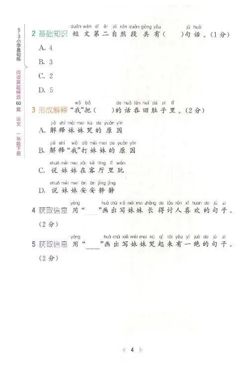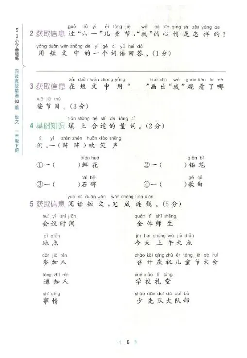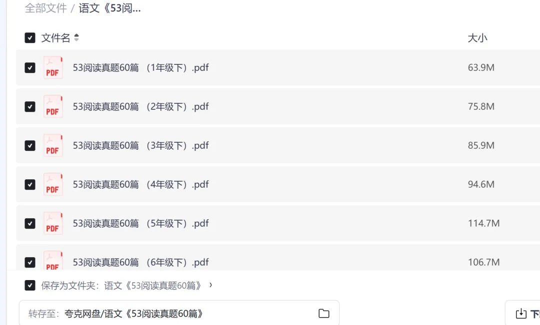 免费下载,小学语文1-6年级下册《阅读真题60篇》(含答案)