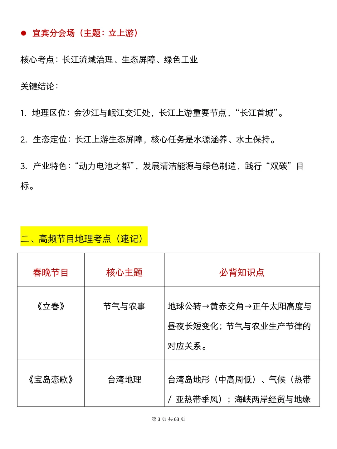 今天给大家整理了三年都用得上的【高中地理春晚热点预测】,基础不好,就用这一份‼️