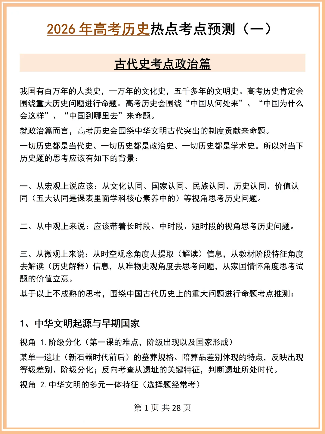 今天给大家整理了三年都用得上的【2026年高考历史热点考点预测】,基础不好,高中三年有这一份就够了‼️