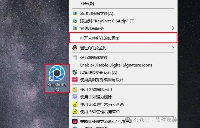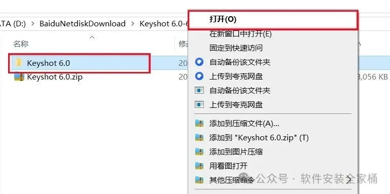 1.打开下载的Keyshot软件安装包,鼠标右击压缩包选择【解压到当前文件夹】。