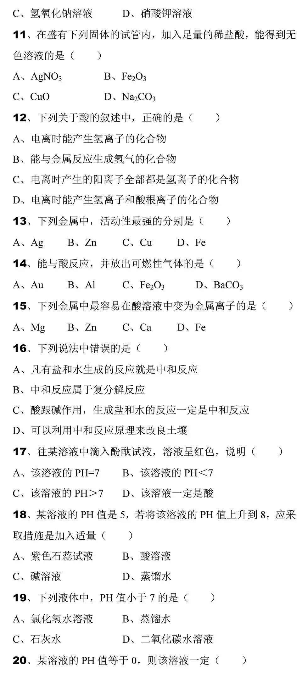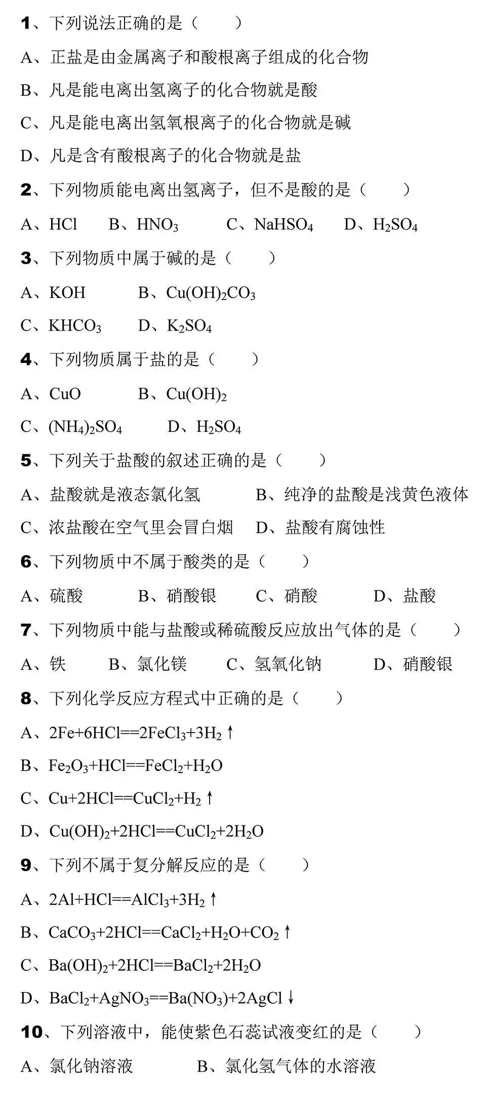 酸、碱、盐专题100道,专项突破(电子版可下载) 通过网盘分享的文件:酸碱盐专题100道 .pdf 链接: https://pan.baidu.com/s/1Alvh8aLMF_laSmSFMVYBag?pwd=1234 提取码: 1234