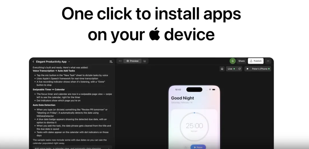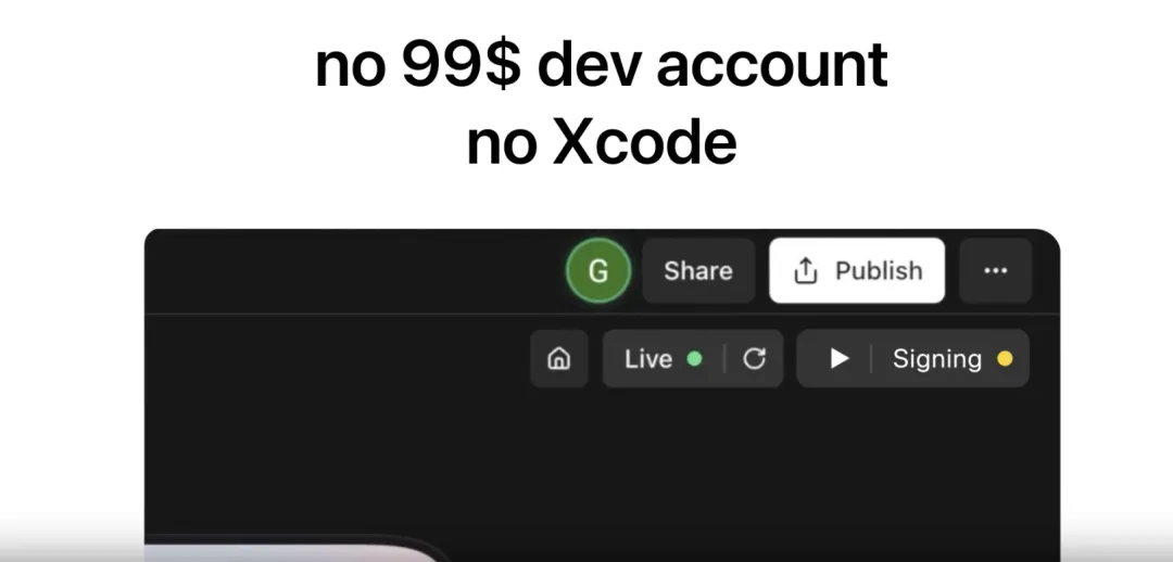 最近有一个应用叫Rork在iOS开发者的社区很火。这个应用不是卖给最终用户的,是给iOS开发者的,可以用 AI 从描述生成完整 App,一键安装,二键发布。而且还不需要开发者账号。