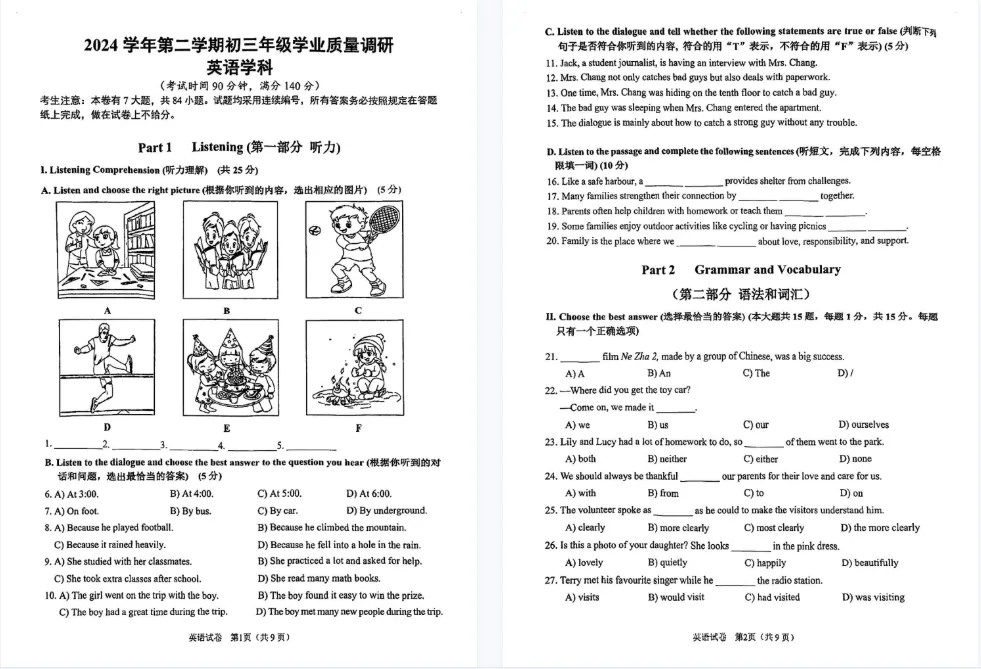 今天,我们特意为大家整理了 2025年上海闵行区初三全科二模试卷合集(PDF高清版,可直接下载打印),涵盖所有必考科目。、