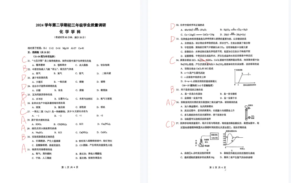 【PDF可下载】2025年上海闵行区初三全科二模试卷合集!