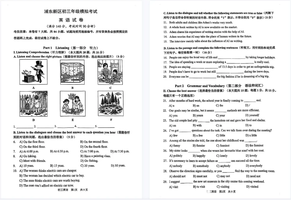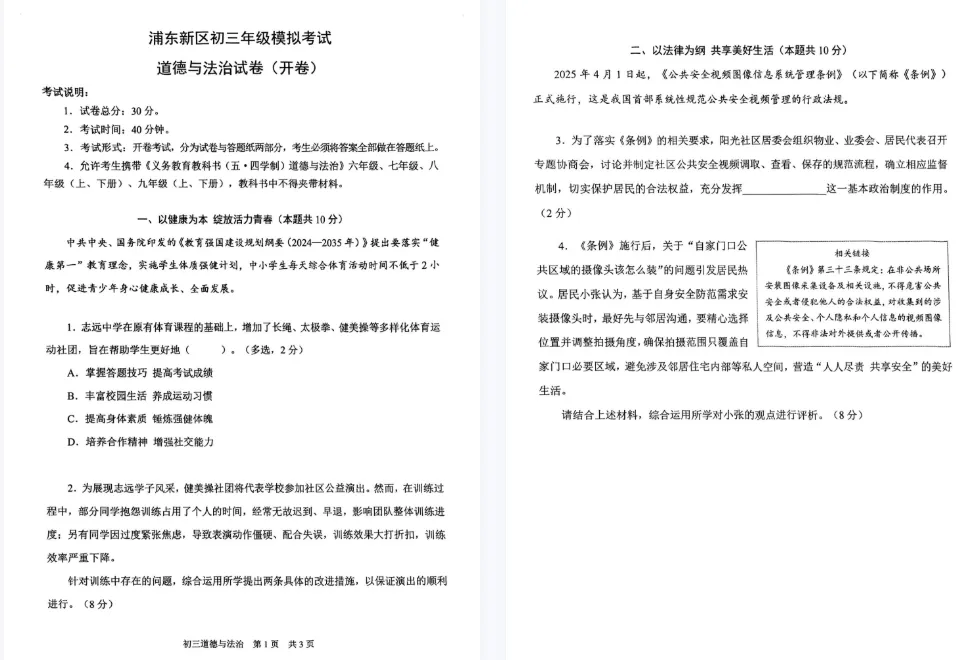 今天,我们特意为大家整理了 2025年上海浦东新区初三全科二模试卷合集(PDF高清版,可直接下载打印),涵盖所有必考科目。