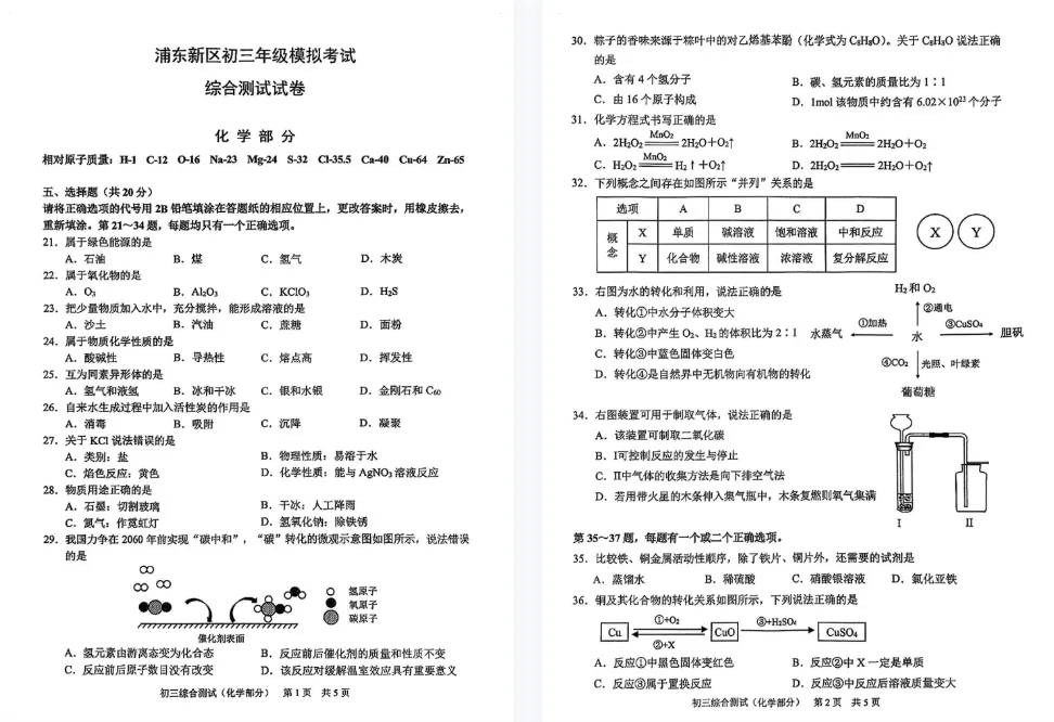【PDF可下载】2025年上海浦东新区初三全科二模试卷合集!