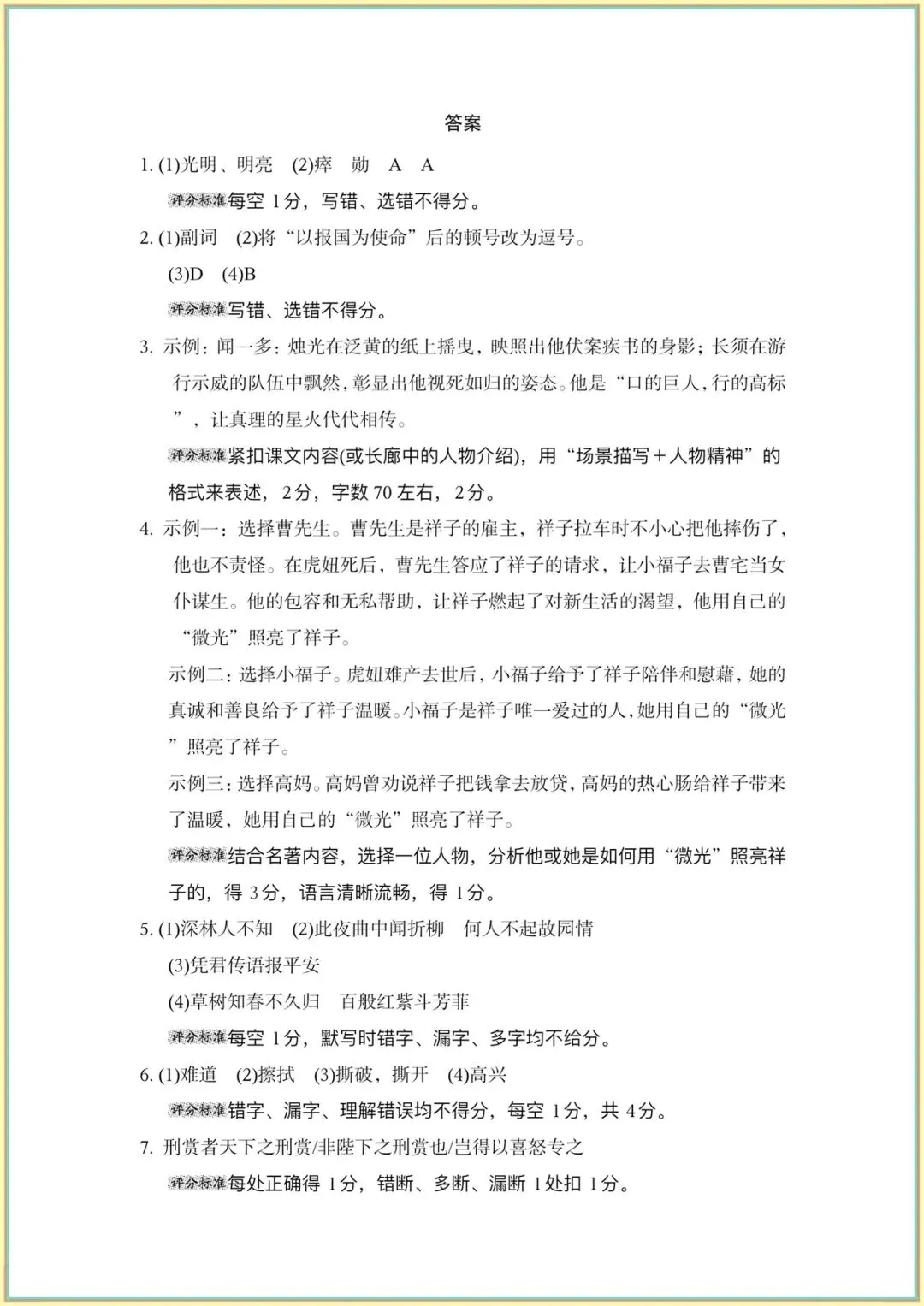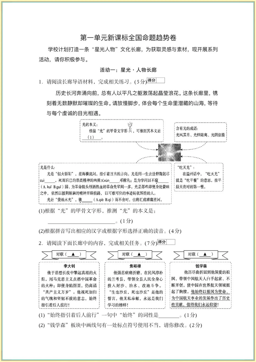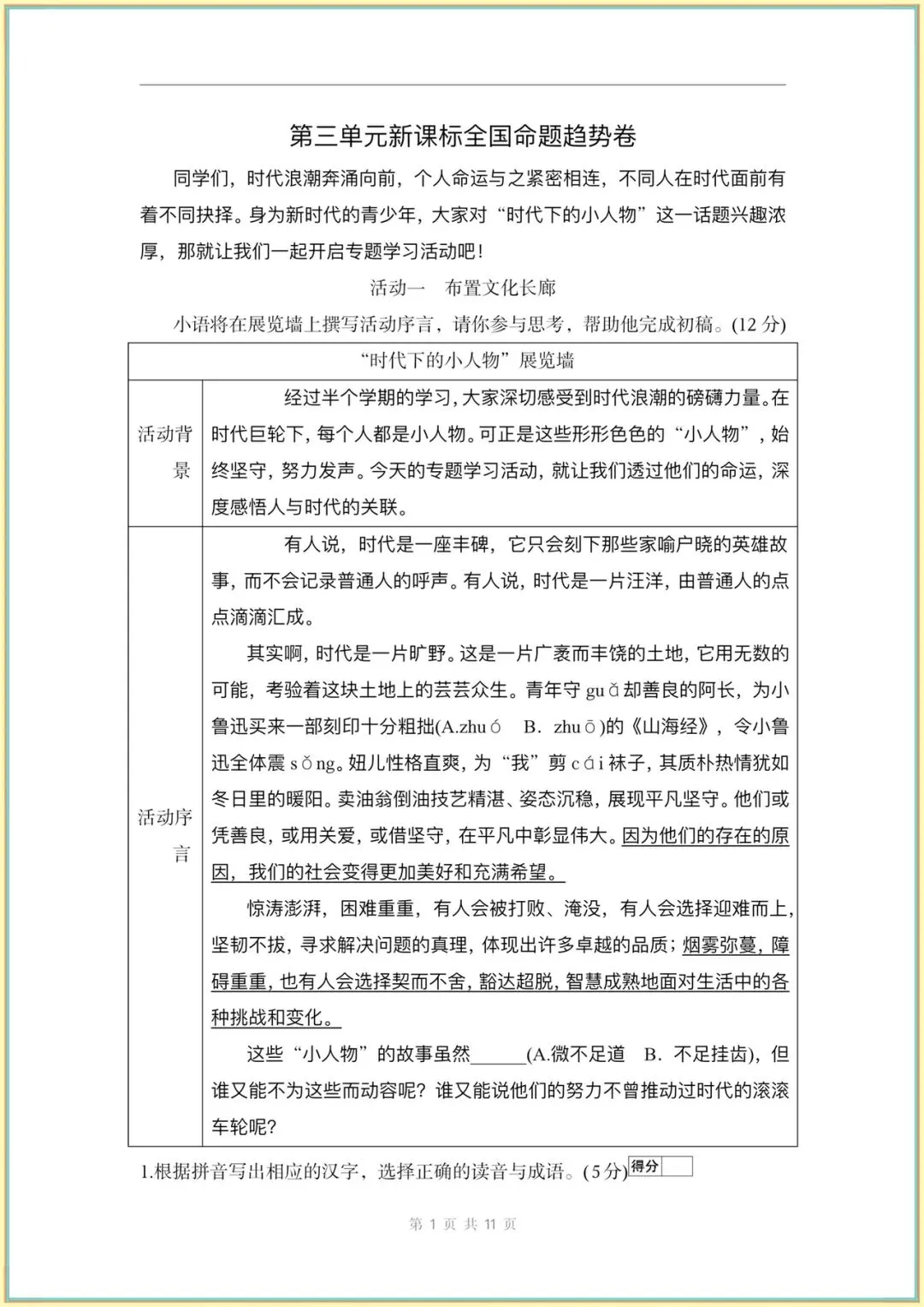 2026新(人教部编版)七下语文(1-2-3单元新课标全国命题趋势卷附答案)完整电子版可打印!