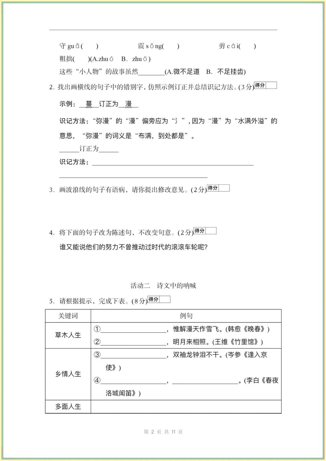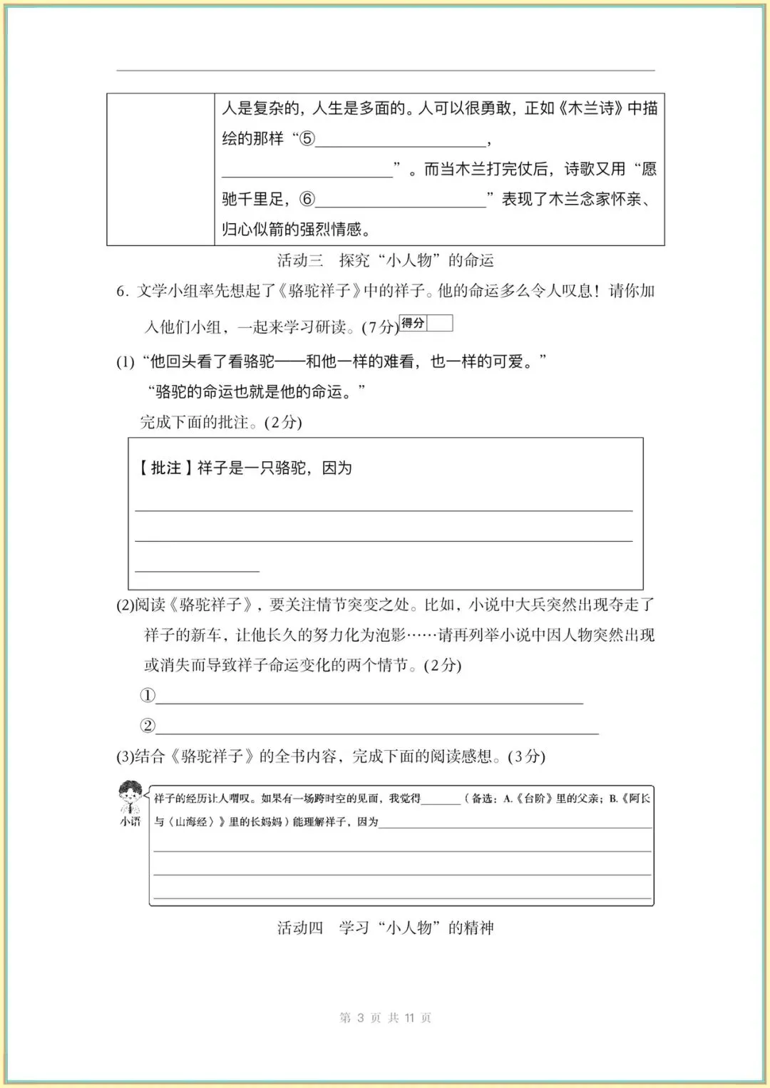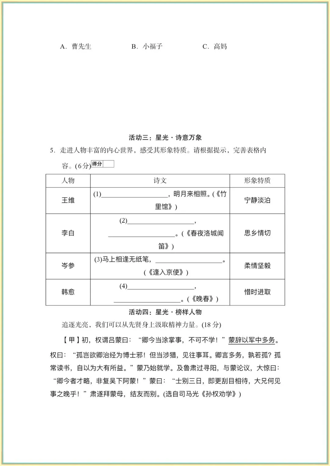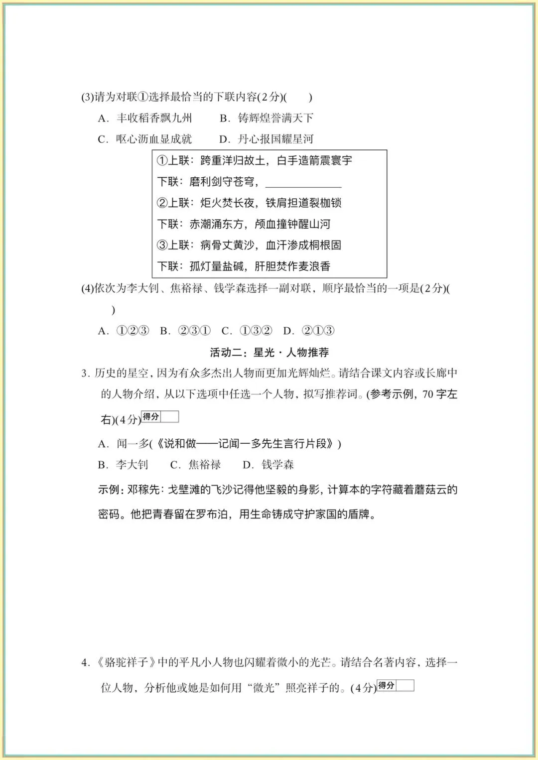 2026新(人教部编版)七下语文(1-2-3单元新课标全国命题趋势卷附答案)完整电子版可打印!
