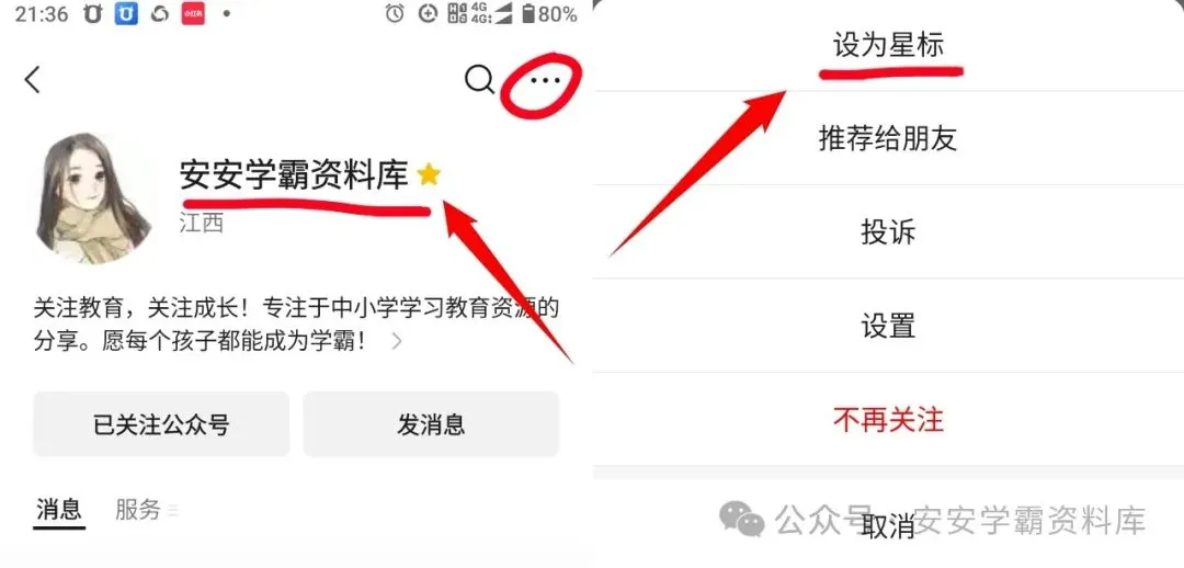 记得点击右上角三个点,将安安设为⭐标,就不会错过每日更新啦~