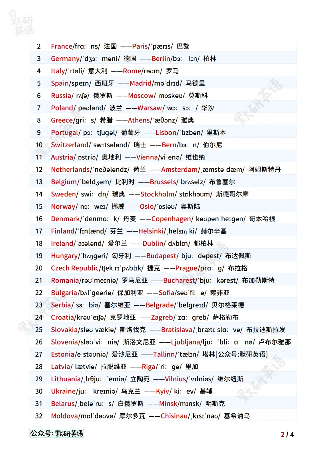 100个全英常见国家及首都名称(附pdf)
