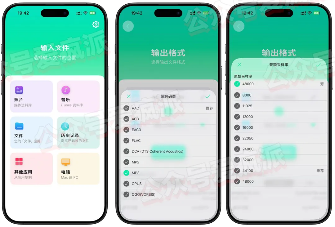 软件支持从任意视频中提取高清音频,快速完成转换,涵盖 MP3、AAC、WAV、M4A、FLAC、WMA、AIFF 等主流及小众音频格式,支持设置采样率等参数,适配课程视频提取、短视频音乐提取、铃声制作、音频编辑等不同需求。