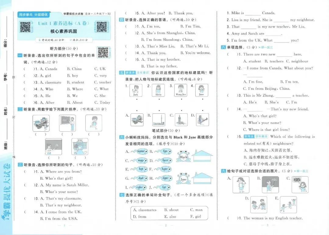 2026春【学霸提优大试卷】人教PEP版三四五六年级下册英语