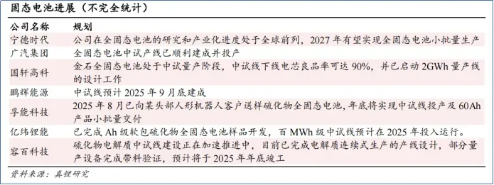 全固态电池方面,2025年5月,公司“金石”全固态电池首条全固态实验线成功贯通。