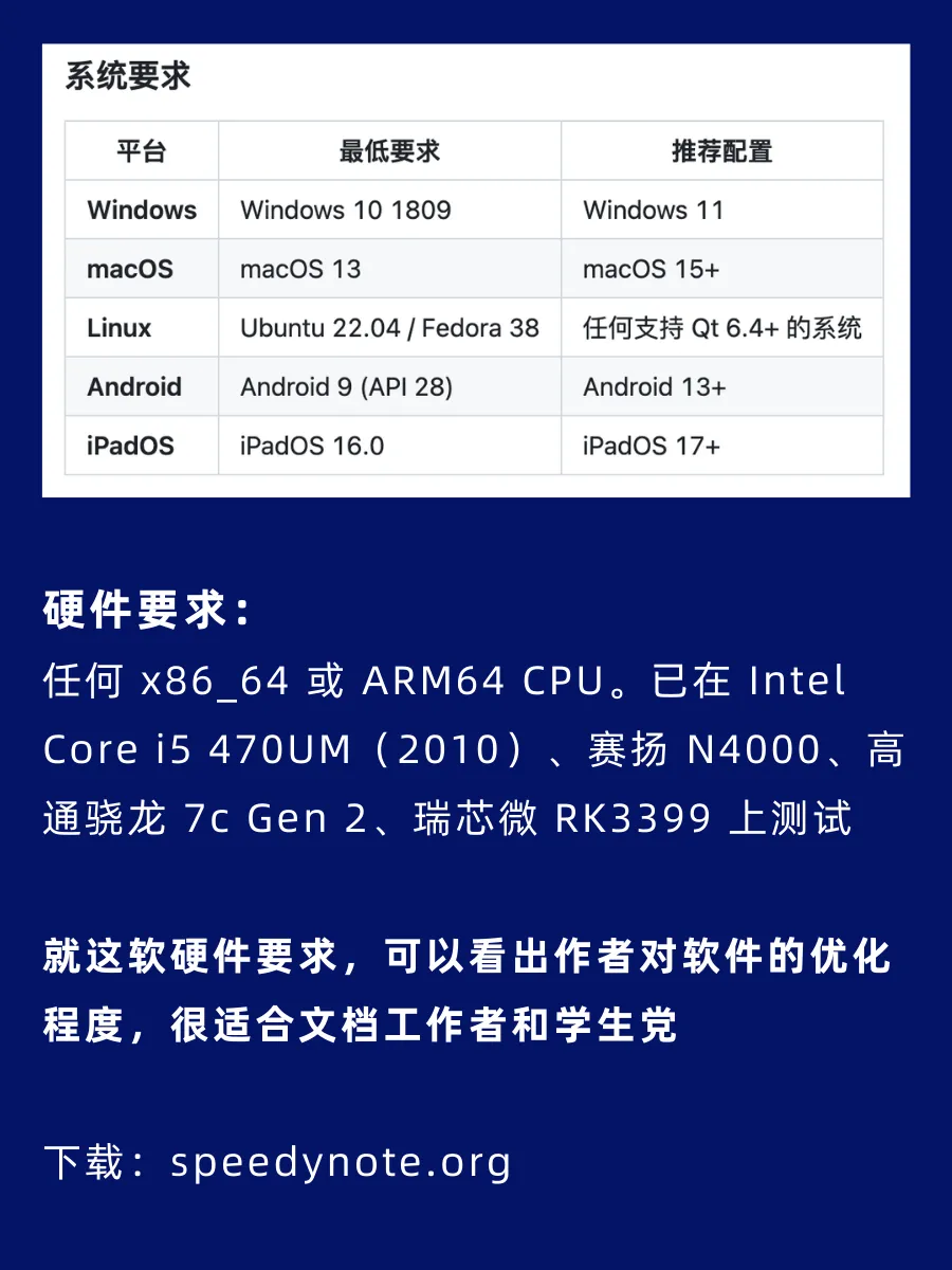 一款能让老设备“起死回生”、专注核心体验的开源笔记工具——SpeedyNote,无需订阅、无广告弹窗,核心优势集中在极致书写性能与全能PDF注释,适配多平台且支持文档链接跳转,是学生党、办公族的高效工具。