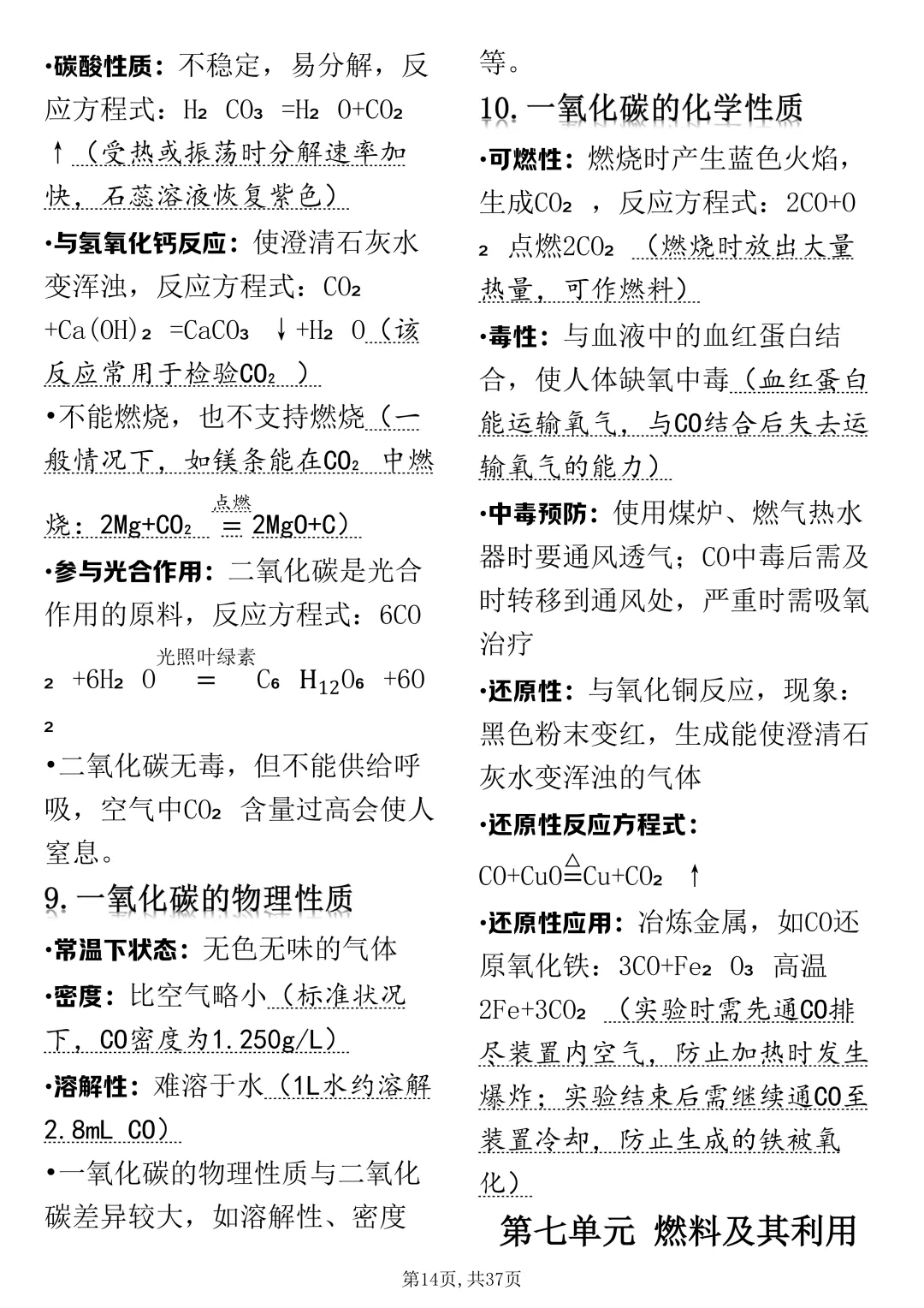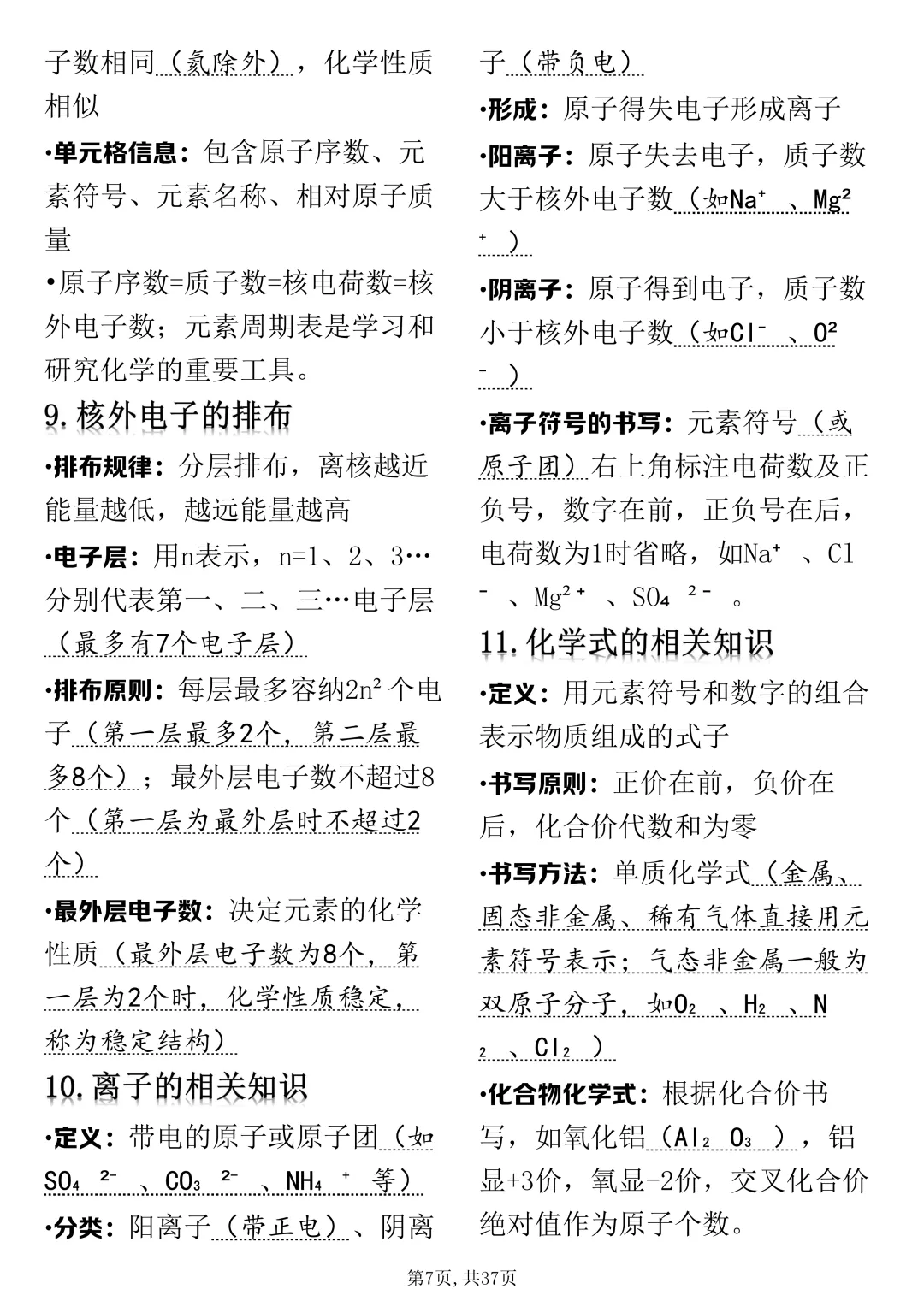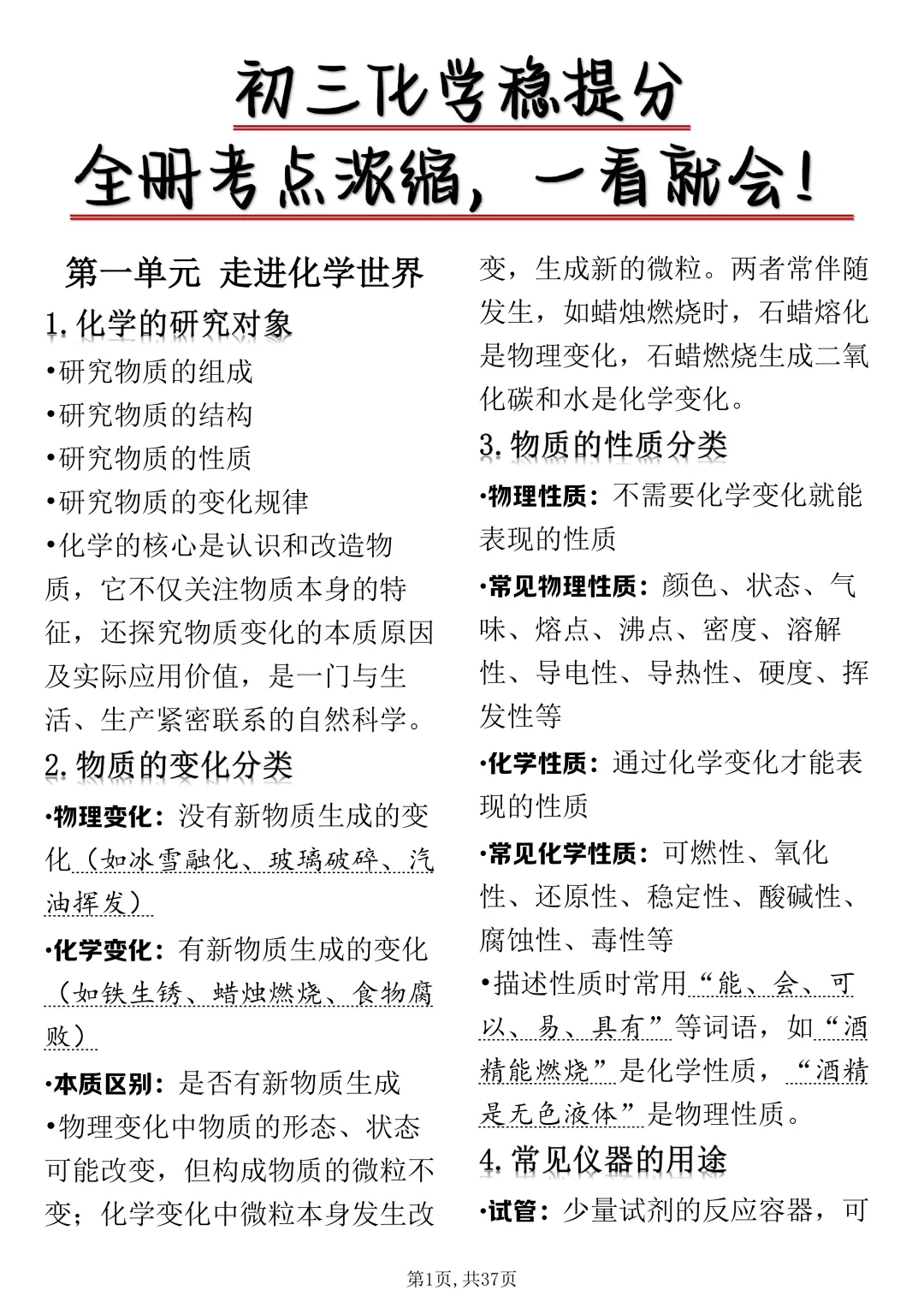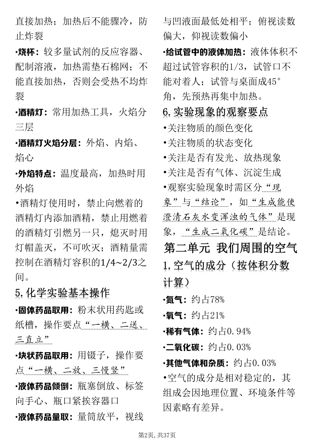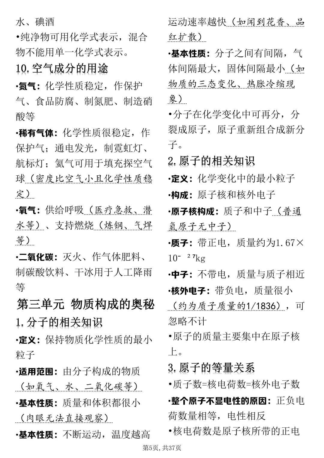 可打印的初中化学考点浓缩总共就这37页