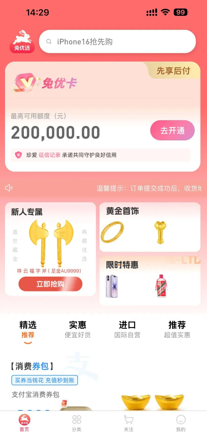 最后也提醒大家一句,虽然兔优选商城APP升级后,开通额度变得更简单了,但额度用得顺不顺,关键还是看自己的还款节奏。一定要理性消费、按时还款,把个人信用维护好,这才是长期可持续使用的前提。