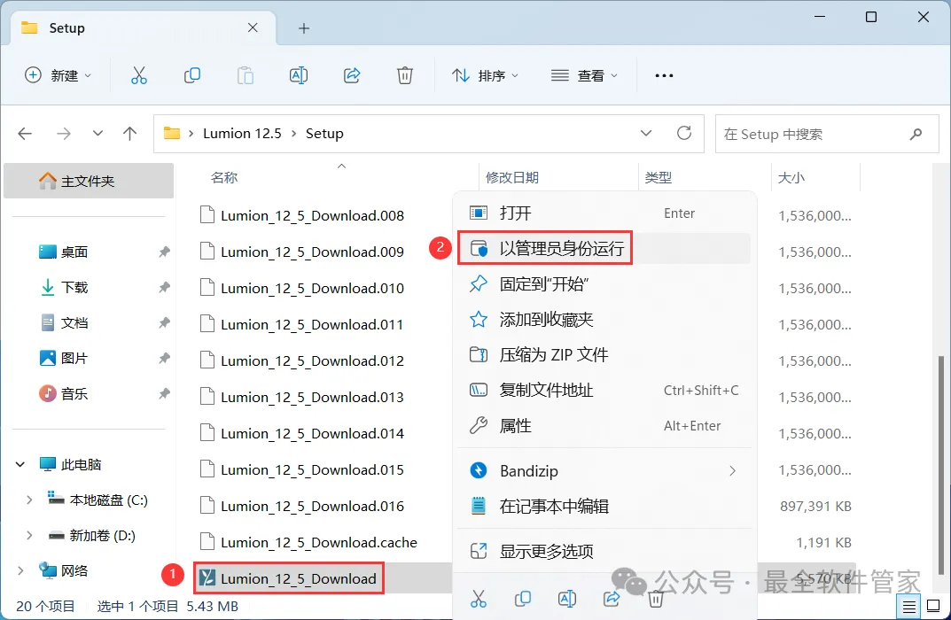 4、找到【Lumion_12_5_Download】应用程序,右键选择【以管理员身份运行】它
