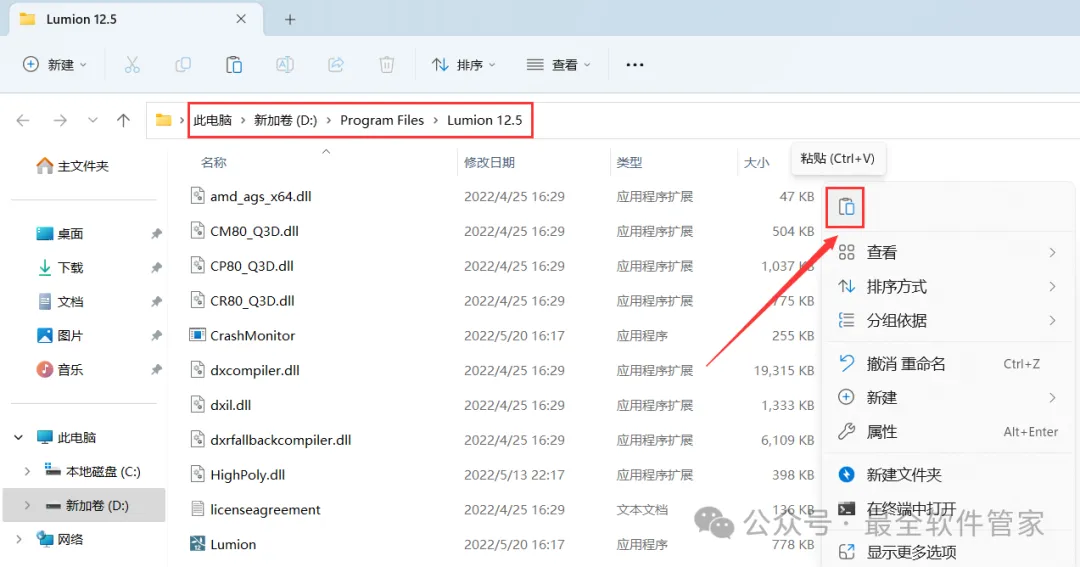 8、回到Lumion 12.5文件夹,找到【lumionprov125-zmco】应用程序,右键点击【复制按钮】
