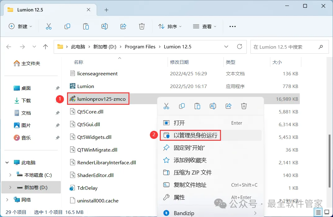 11、找到粘贴的【lumionprov125-zmco】应用程序,右键选择【以管理员身份运行】它