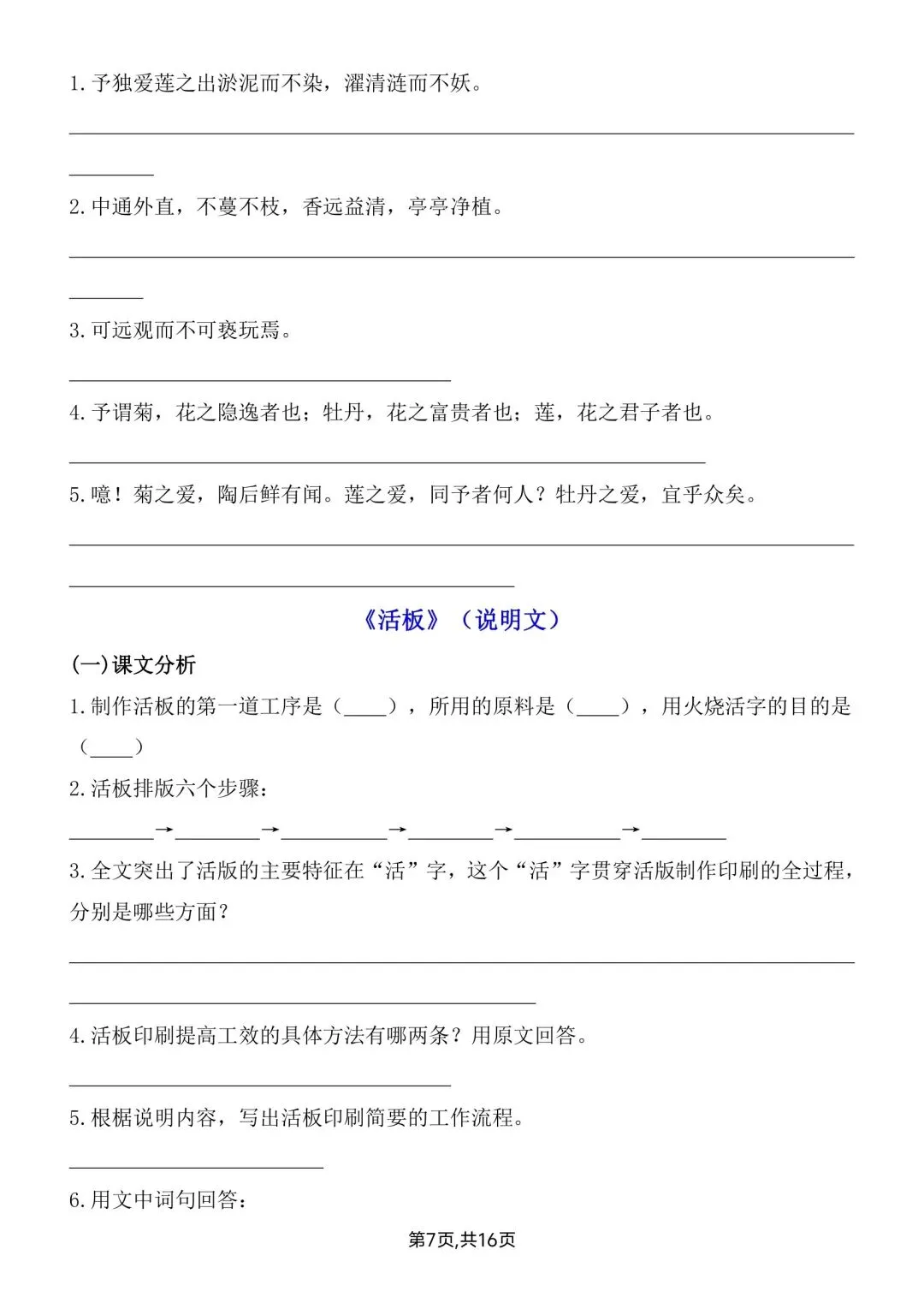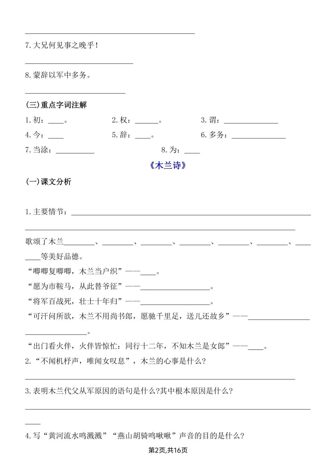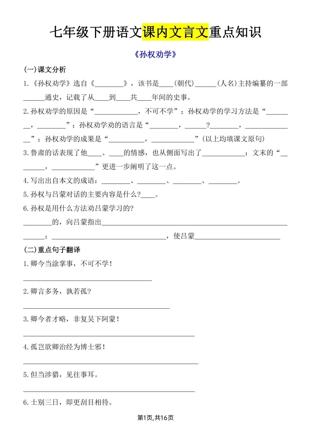 七年级下册语文课内文言文重点知识高清电子版可打印
