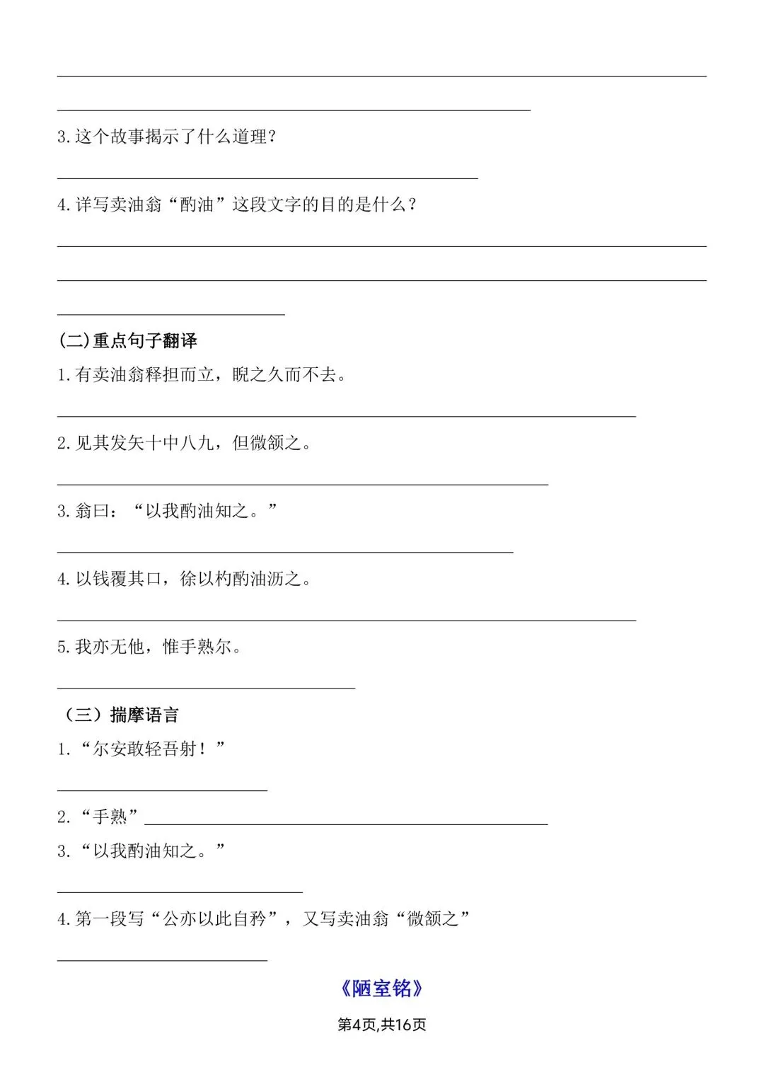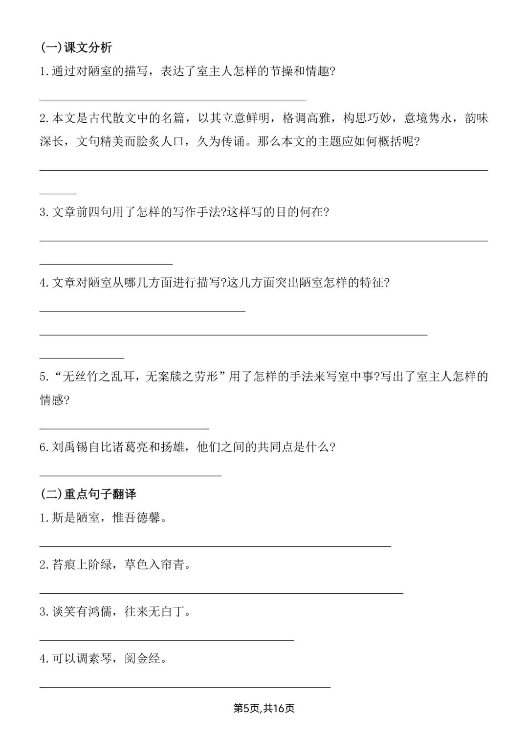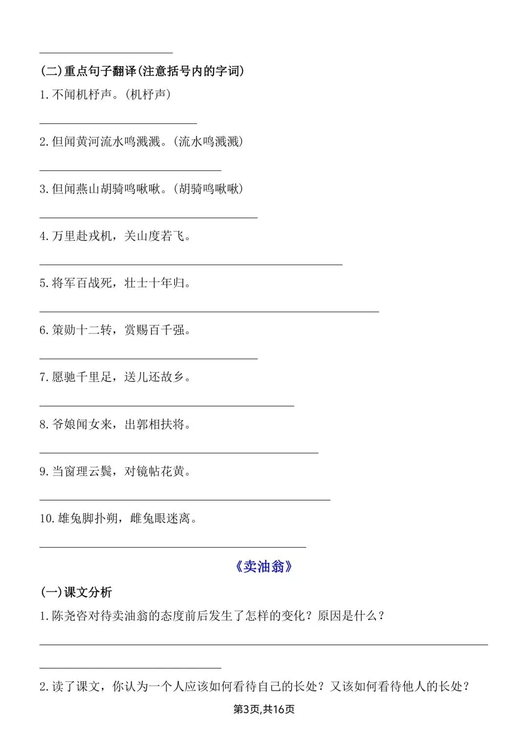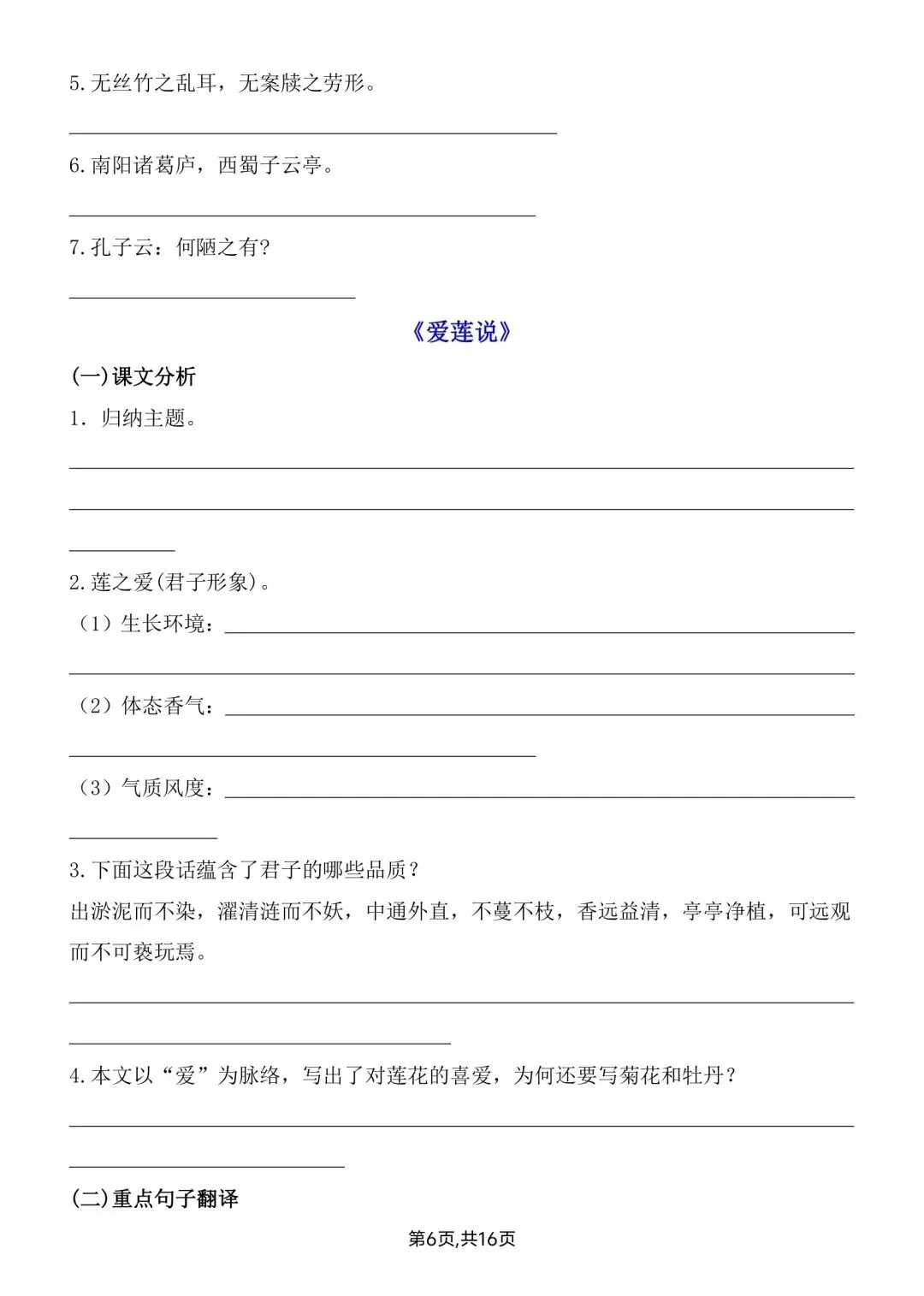 七年级下册语文课内文言文重点知识高清电子版可打印