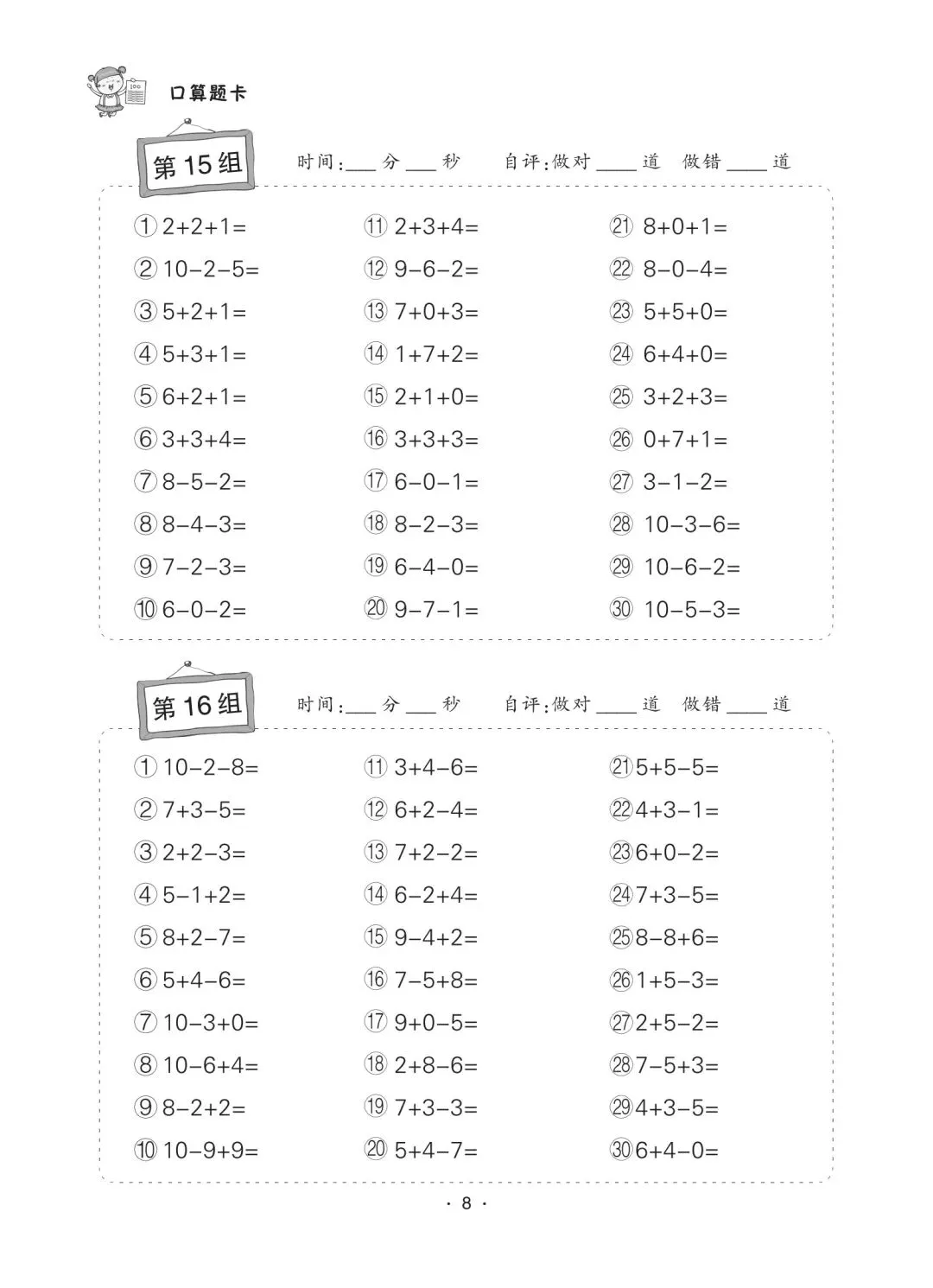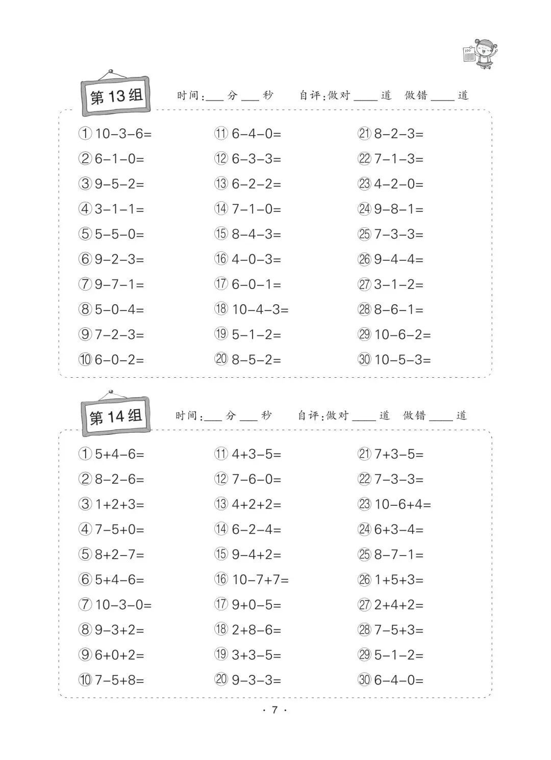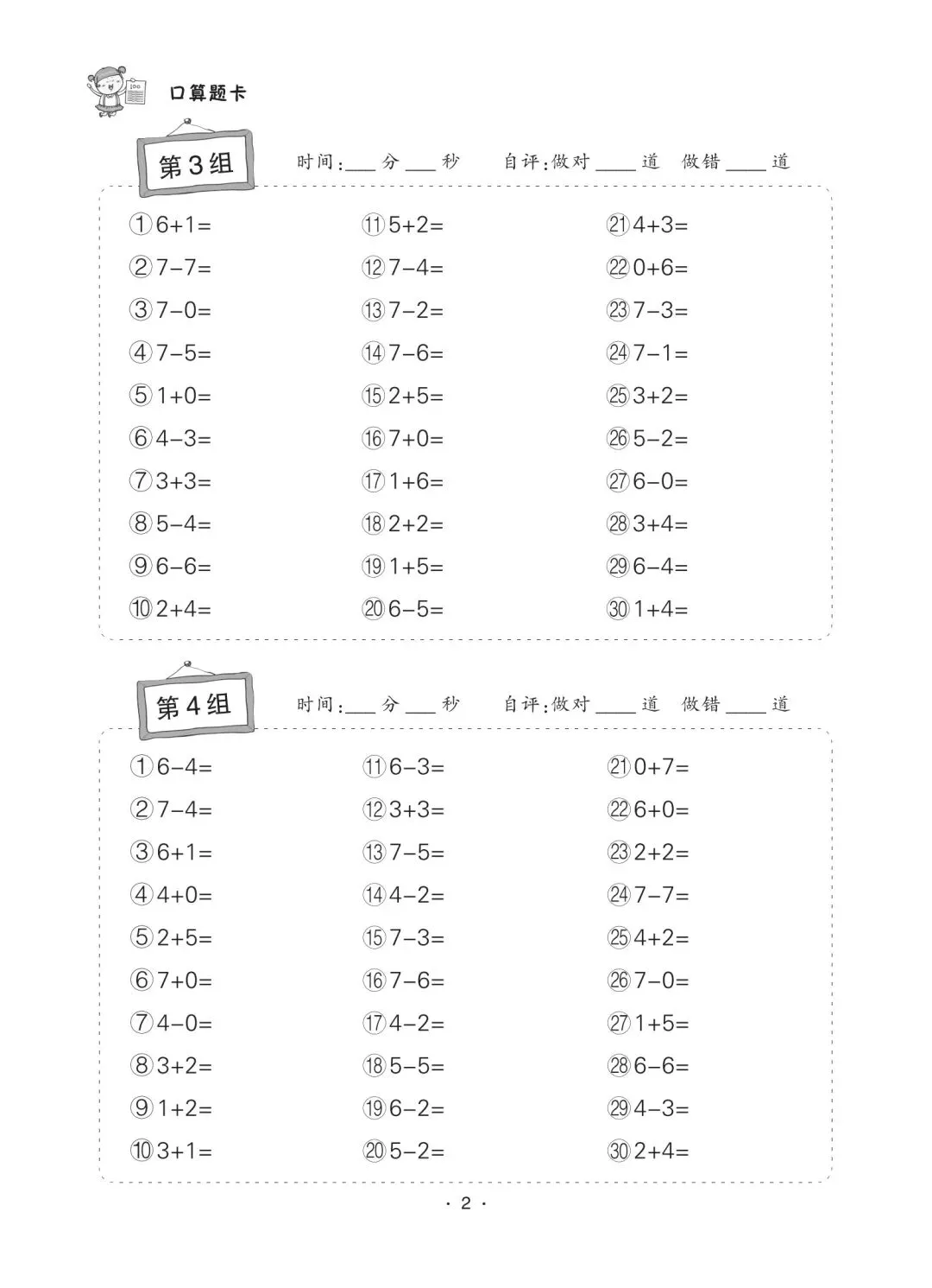 新版一年级下册数学状元天天练口算题卡高清电子版可打印