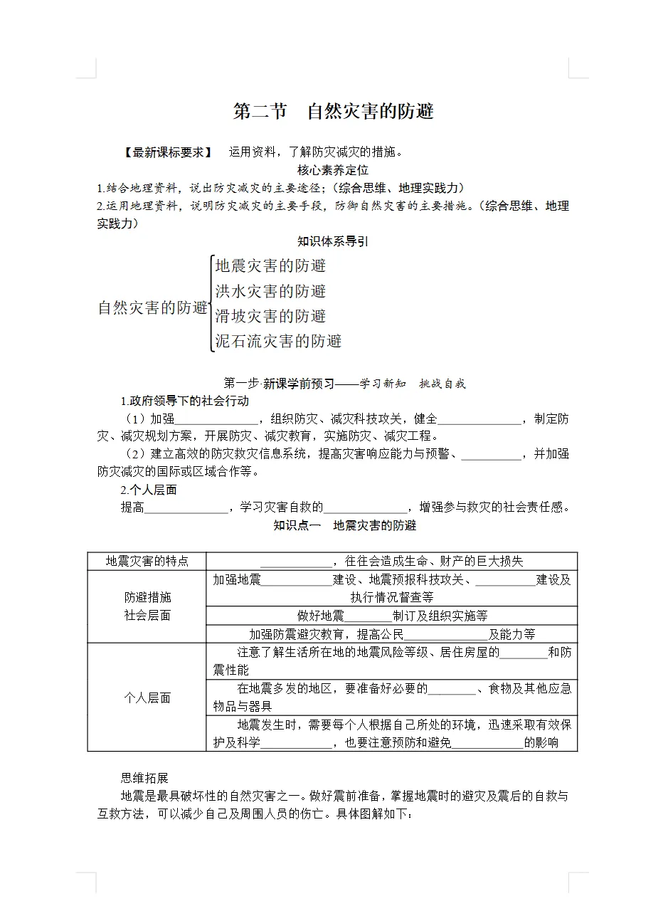 鲁教版高中地理必修一导学案 | 可下载打印