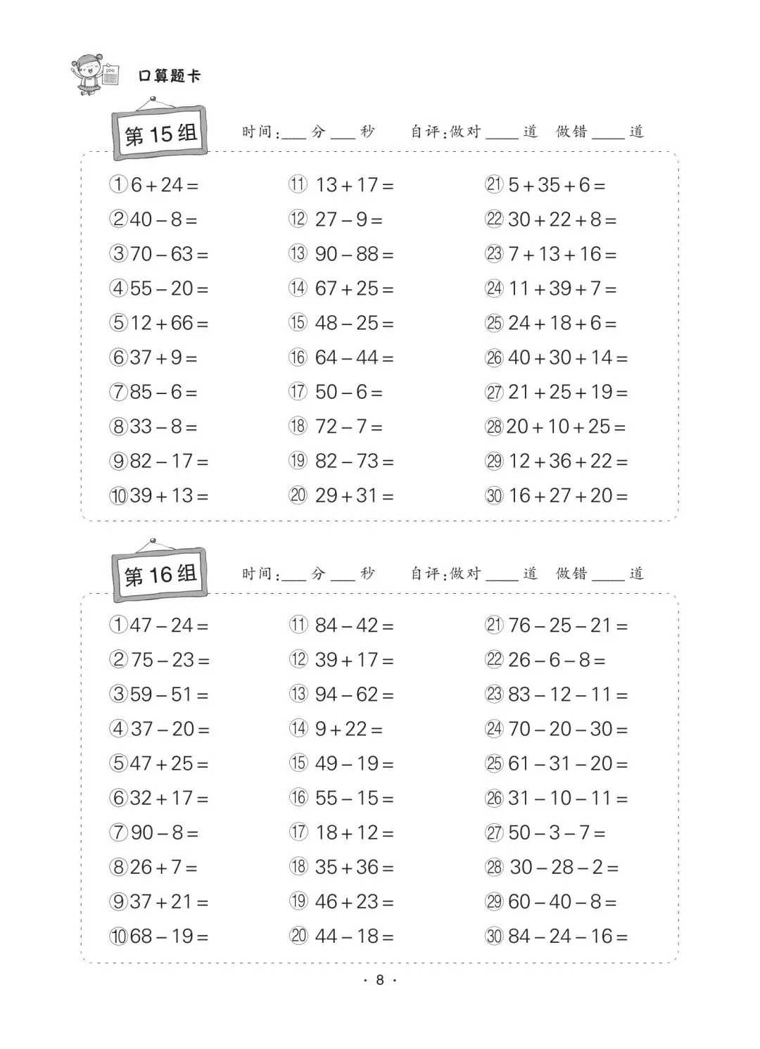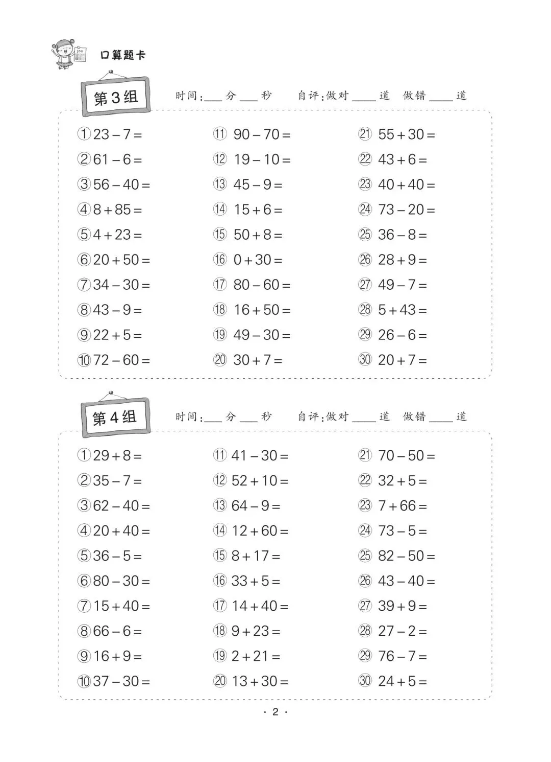 新版二年级下册数学状元天天练口算题卡高清电子版可打印