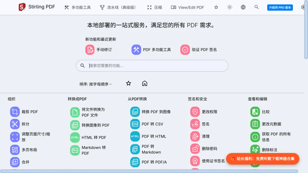 Stirling PDF,一个一站式的PDF工具集,里面包含了我们日常处理PDF相关的几乎所有功能。