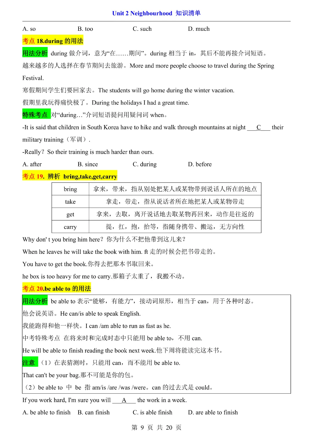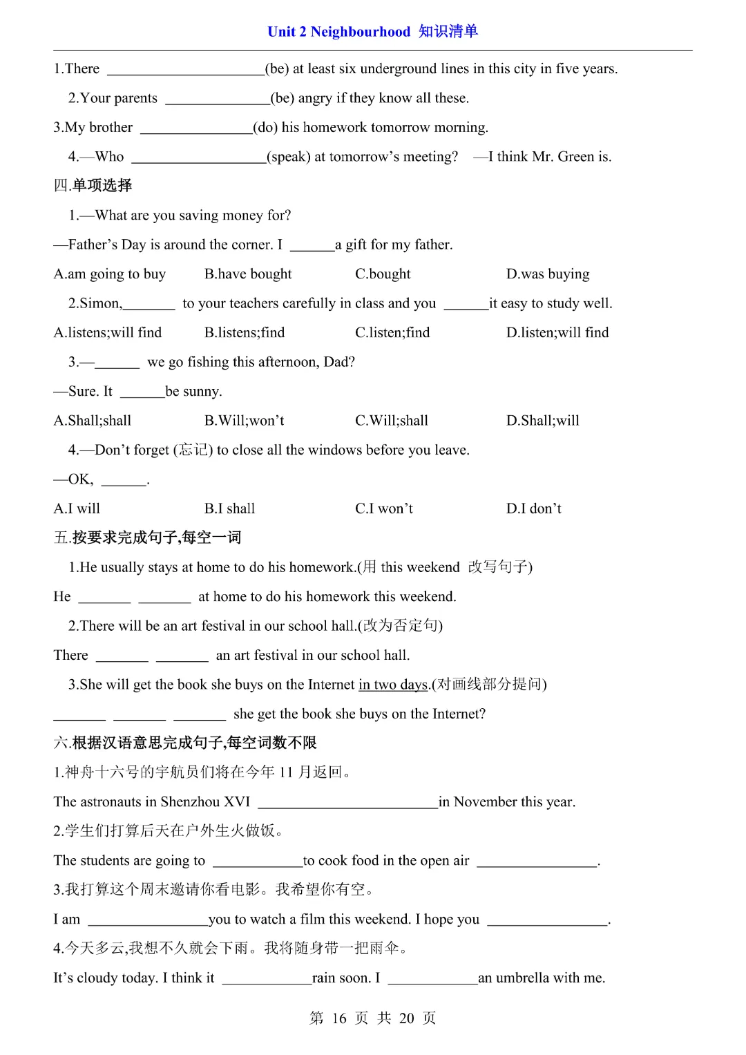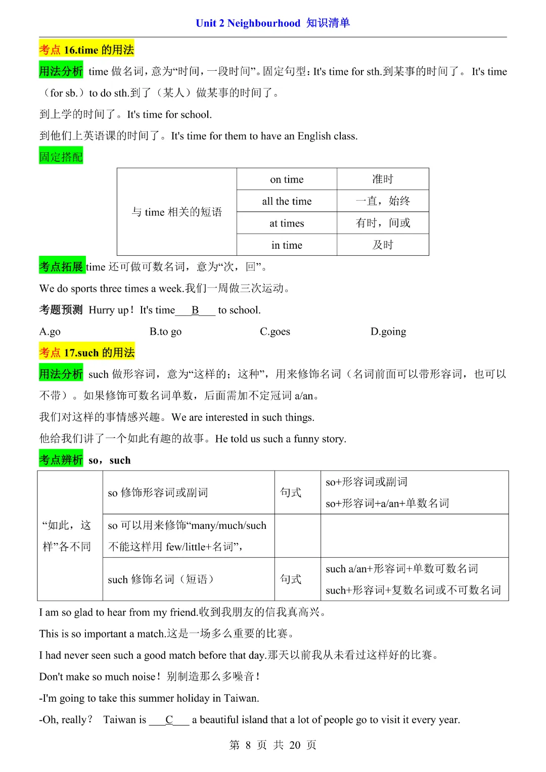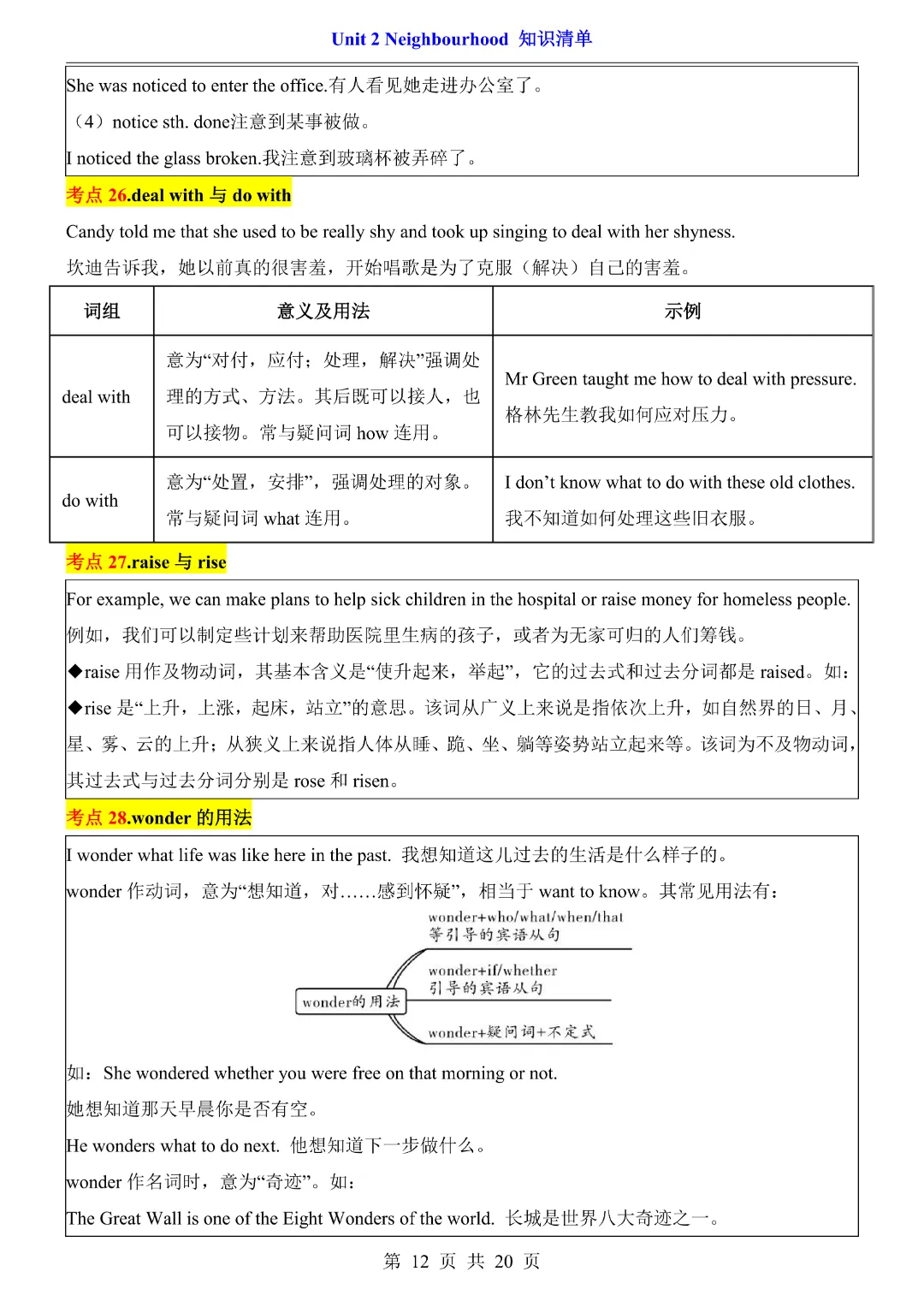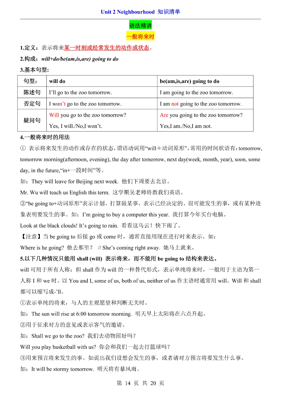 【七年级下册英语译林版】初一下册英语Unit2知识清单考点练习|完整高清可打印