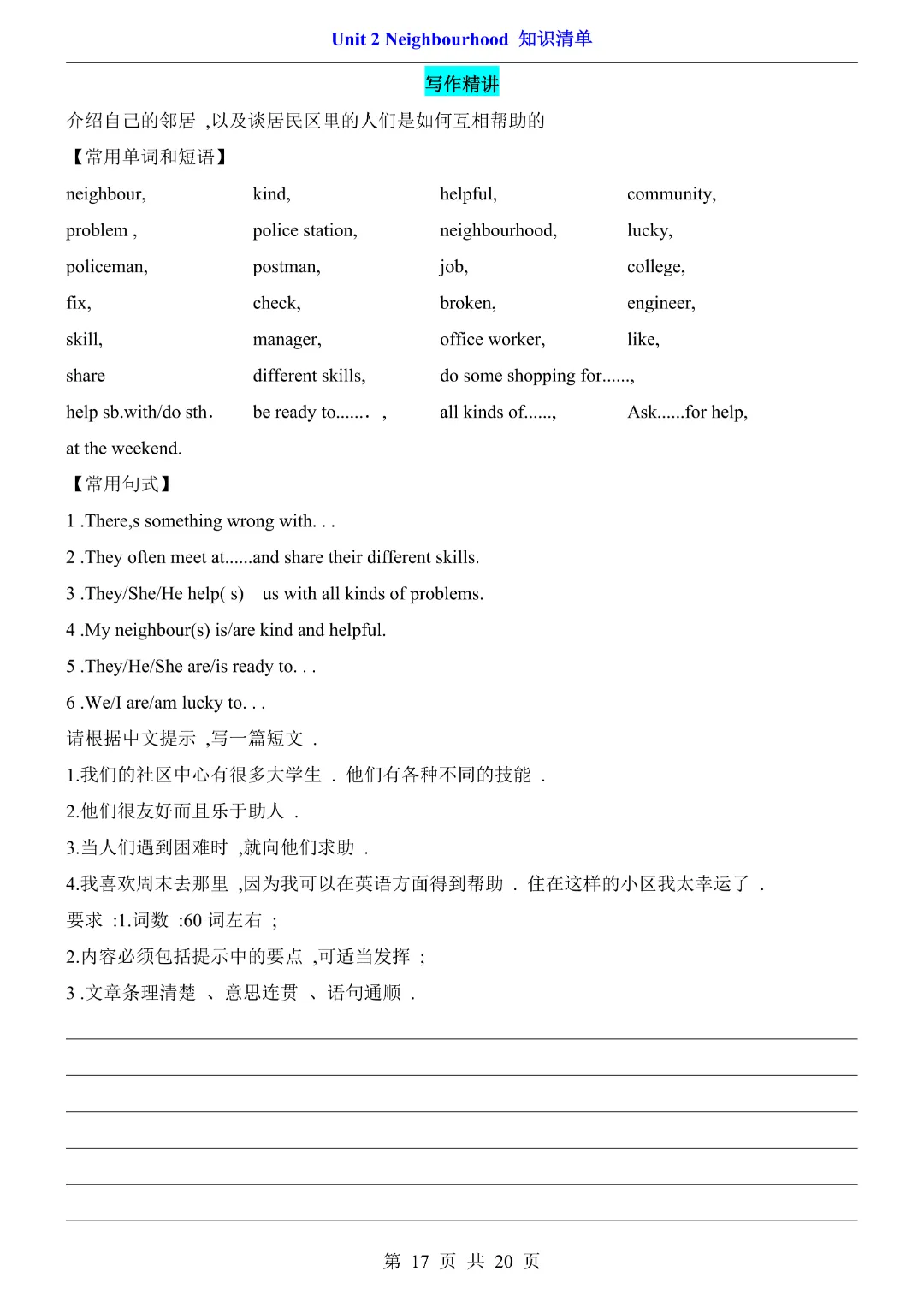 今日给大家分享的是:【七年级下册英语译林版】初一下册英语Unit2知识清单考点练习|完整高清电子版可打印