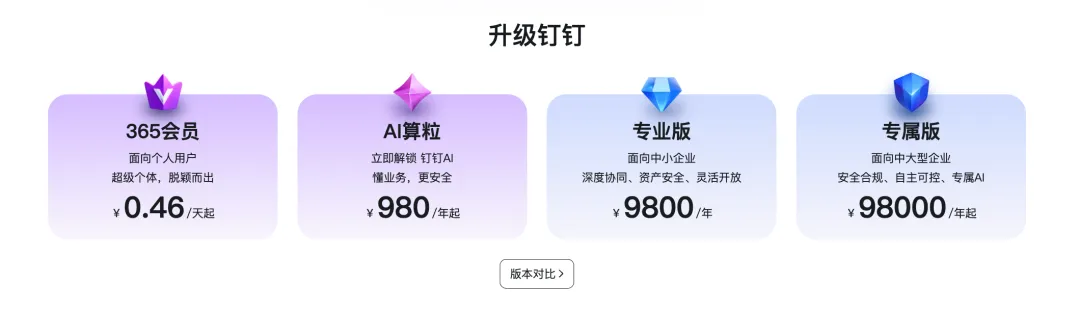 钉钉的收费模式,堪称企业的“成本福音”。面向中小企业的专业版9800元/年,中大型企业的专属版98000元/年,费用不随用户数增长。对比按人头收费的竞品,2000人的企业选择钉钉,每年能节省数十万甚至上百万的成本,这也是钉钉成为众多企业首选的关键原因。