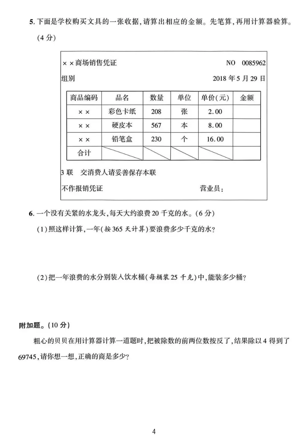 青岛六三版四年级下册数学第一单元测试卷(电子版可打印附答案)
