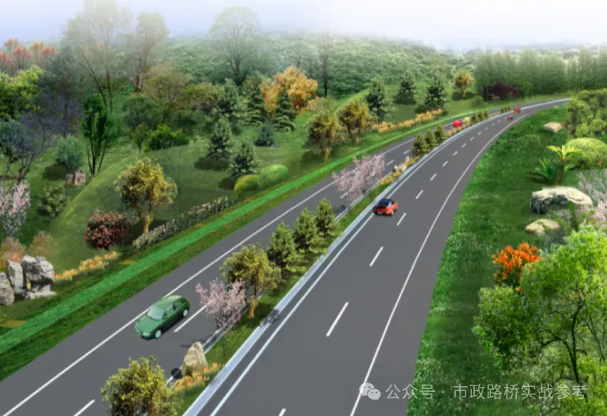 (2)本公路技术等级为一级公路,设计速度 100km/h,沥青混凝土路面宽度2× 11.25m。