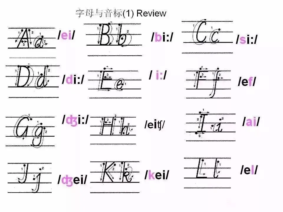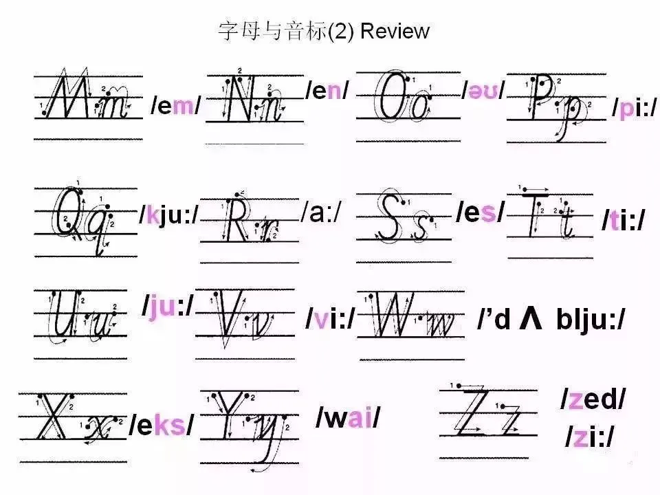 字母要按一定的笔划顺序书写,其书写笔顺如下。(请注意书写的格式和大小写的区别。)