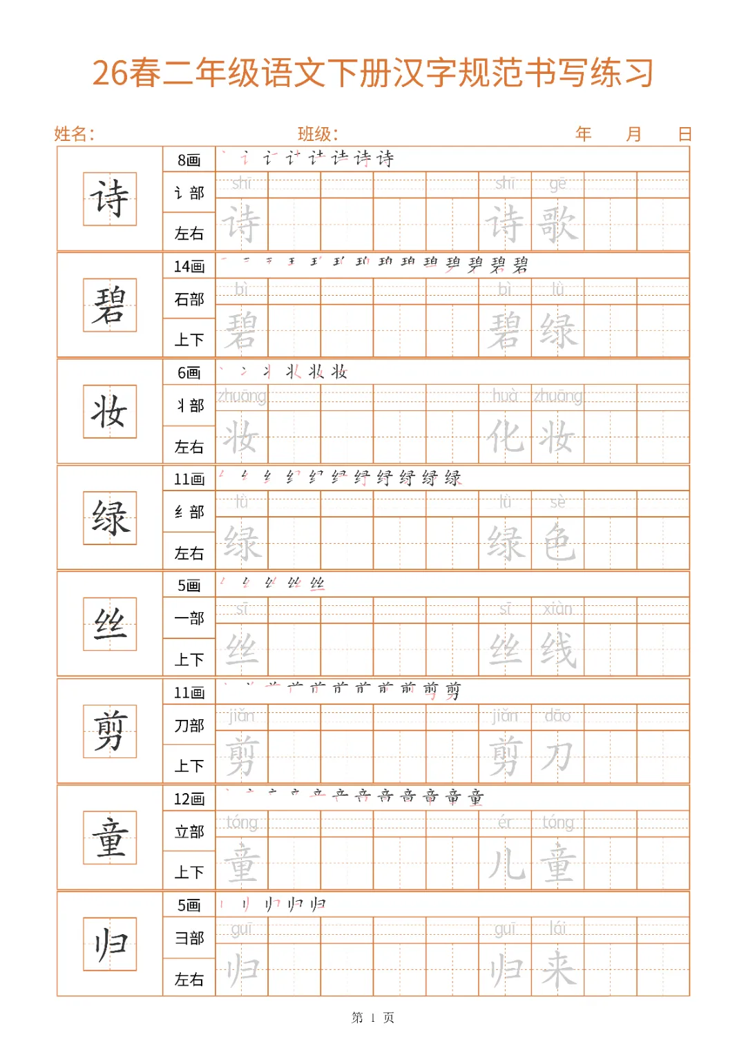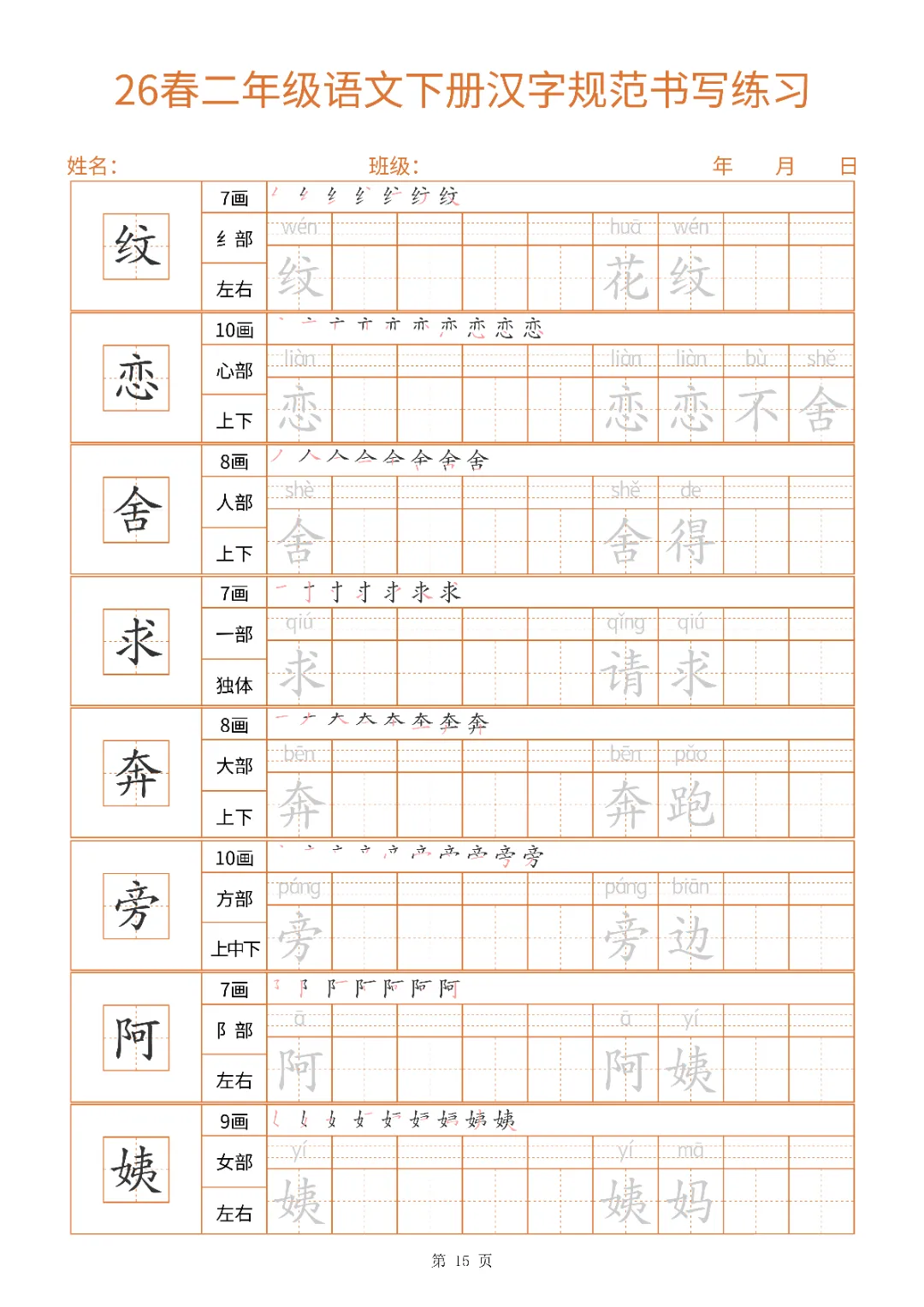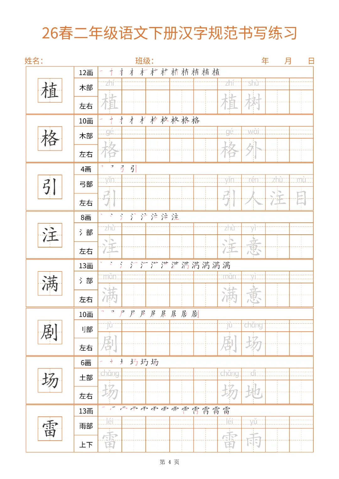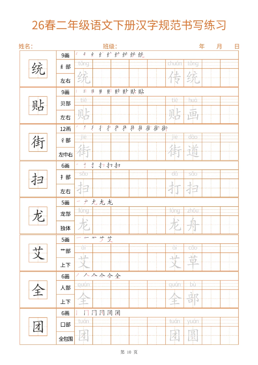 2026年二年级下册汉字书写规范字帖|电子版可打印