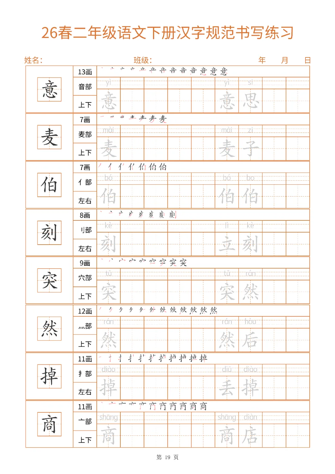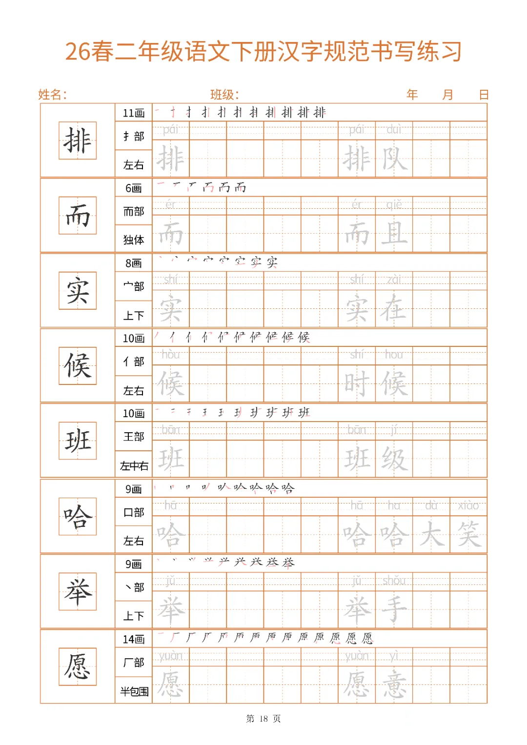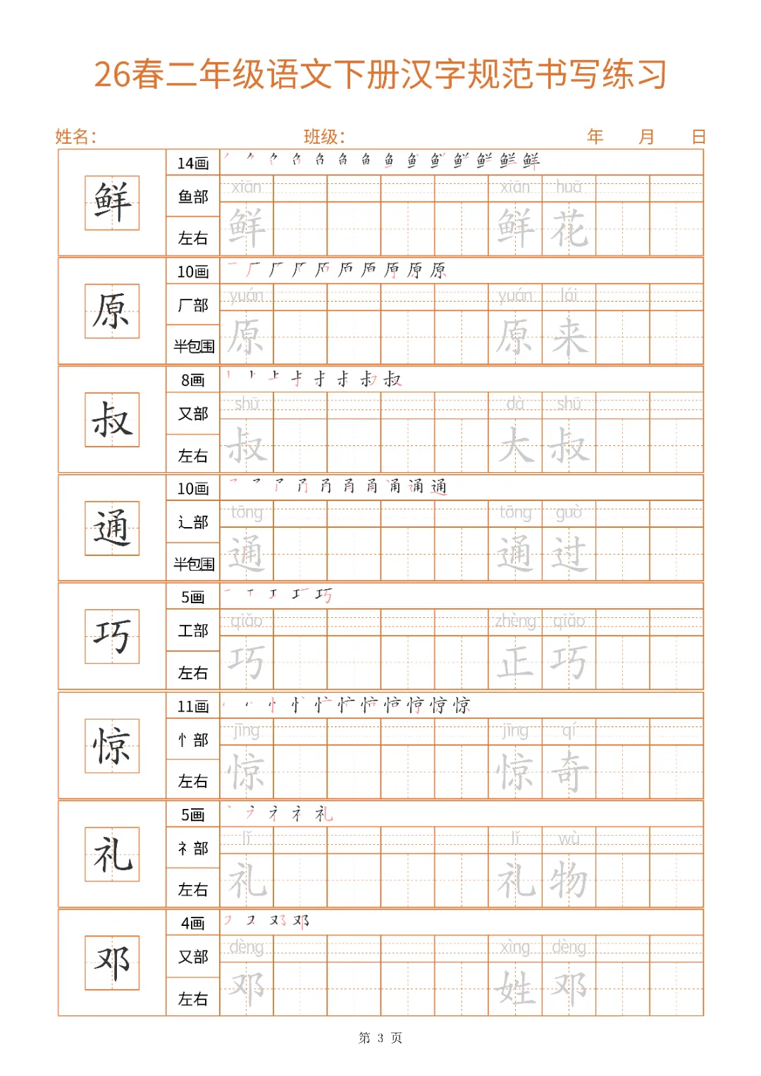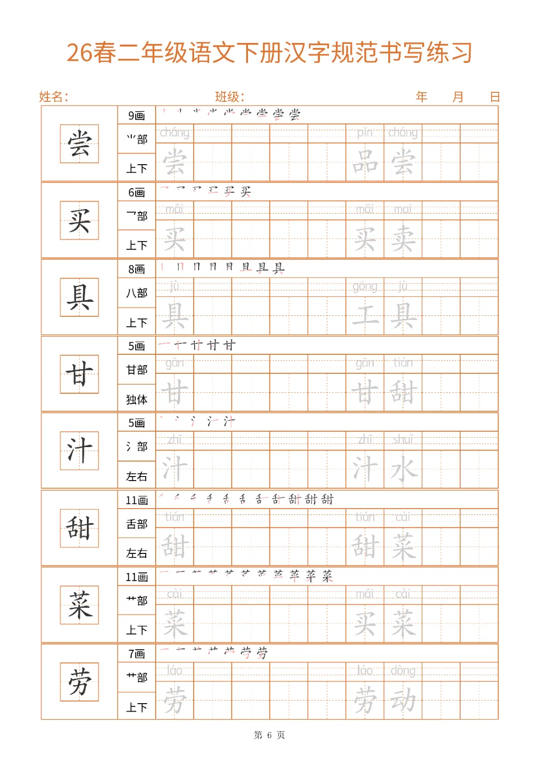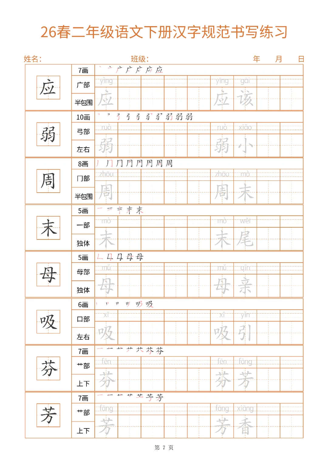 2026年二年级下册汉字书写规范字帖|电子版可打印