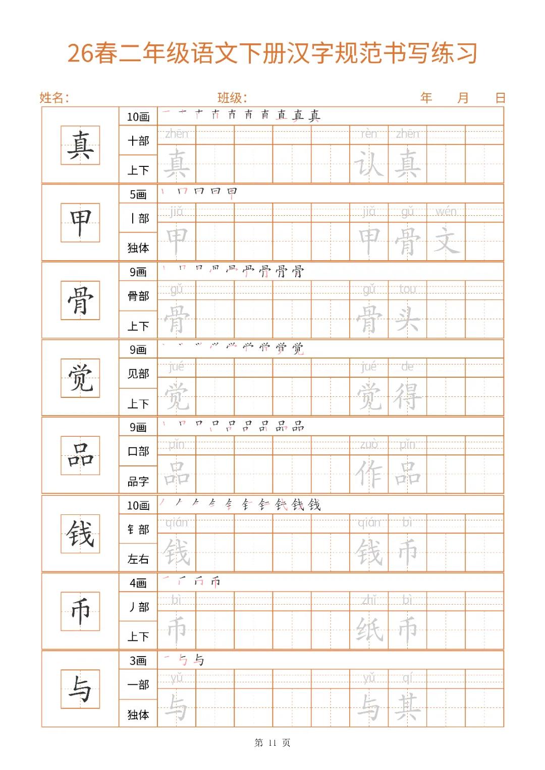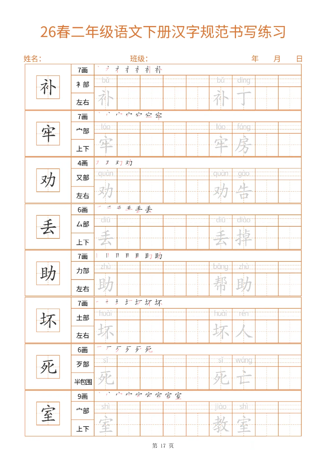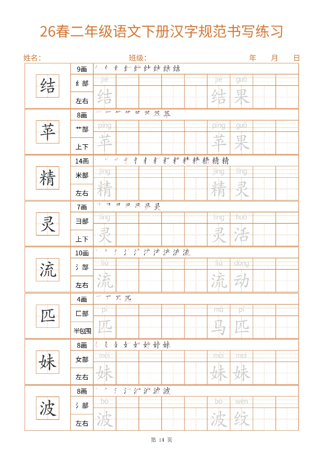 2026年二年级下册汉字书写规范字帖(电子版可打印)
