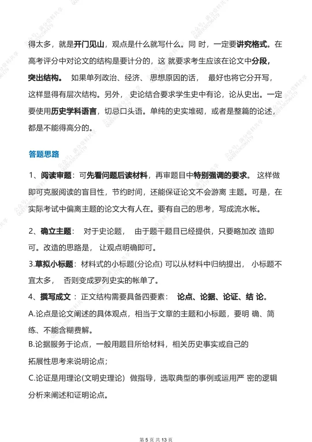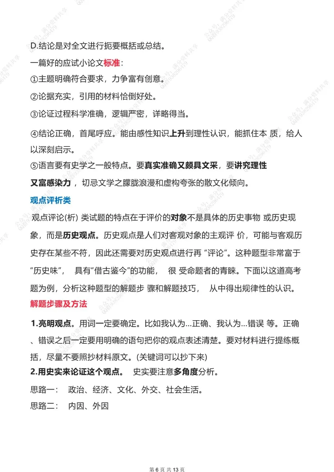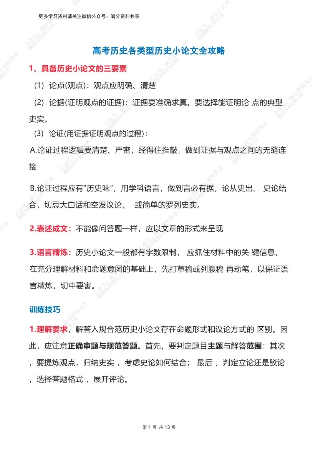 高考历史各类型历史小论文全攻略(pdf分享) 点击图片可观看高清版,文末有获取打印版方式 (完整版13页,部分展示) 领取完整电子版: ①:点一点右下角的“赞”和“在看”,感谢! ②:点击“关注”回复“高中资料”获取资料 点击下方“公众号”关注,可以进入主页哦!