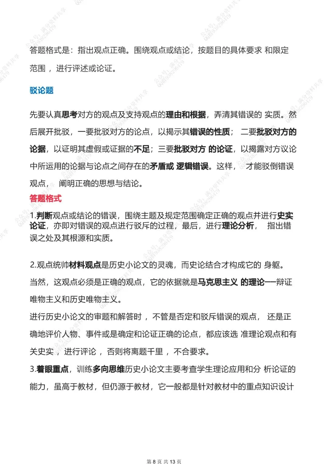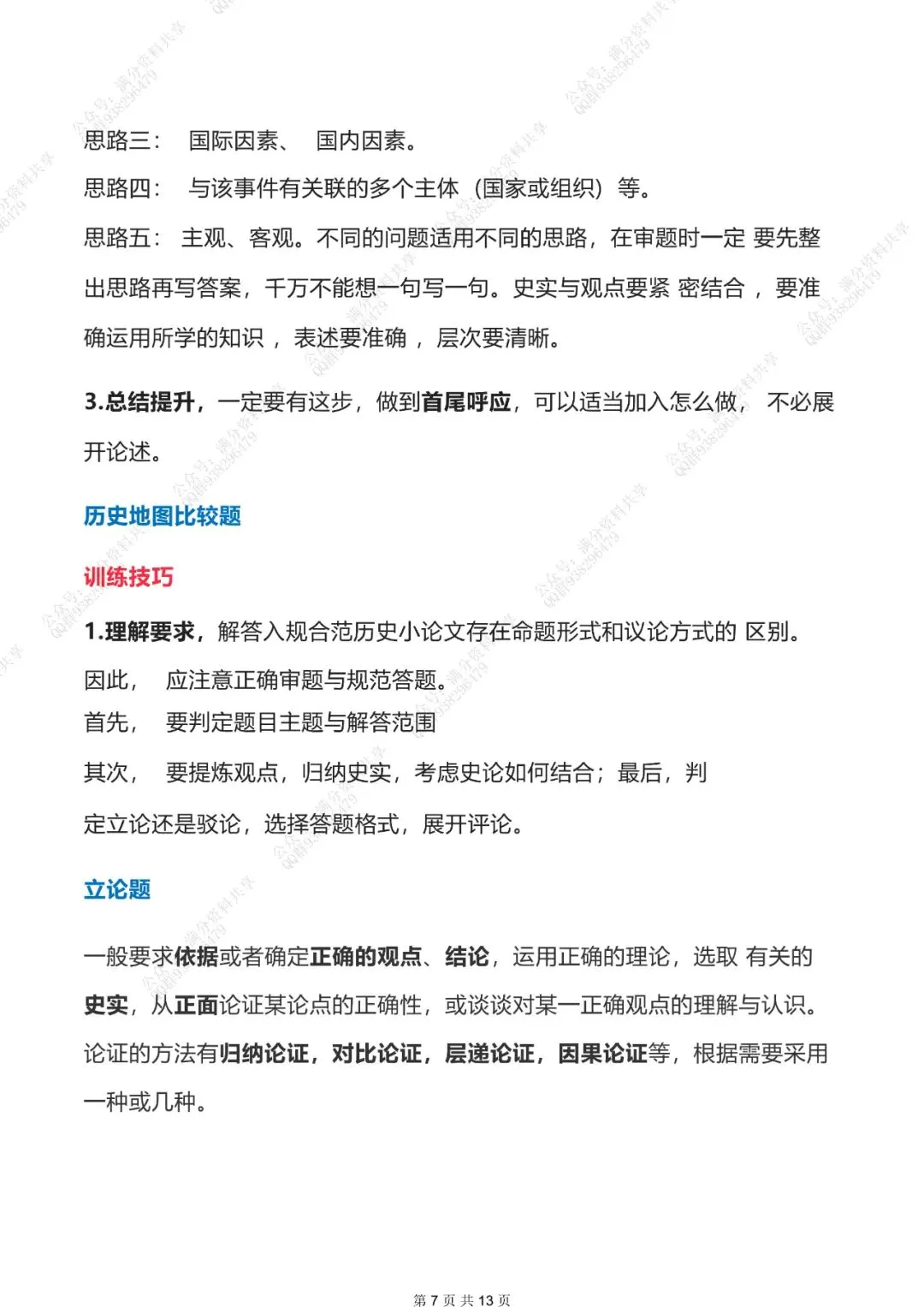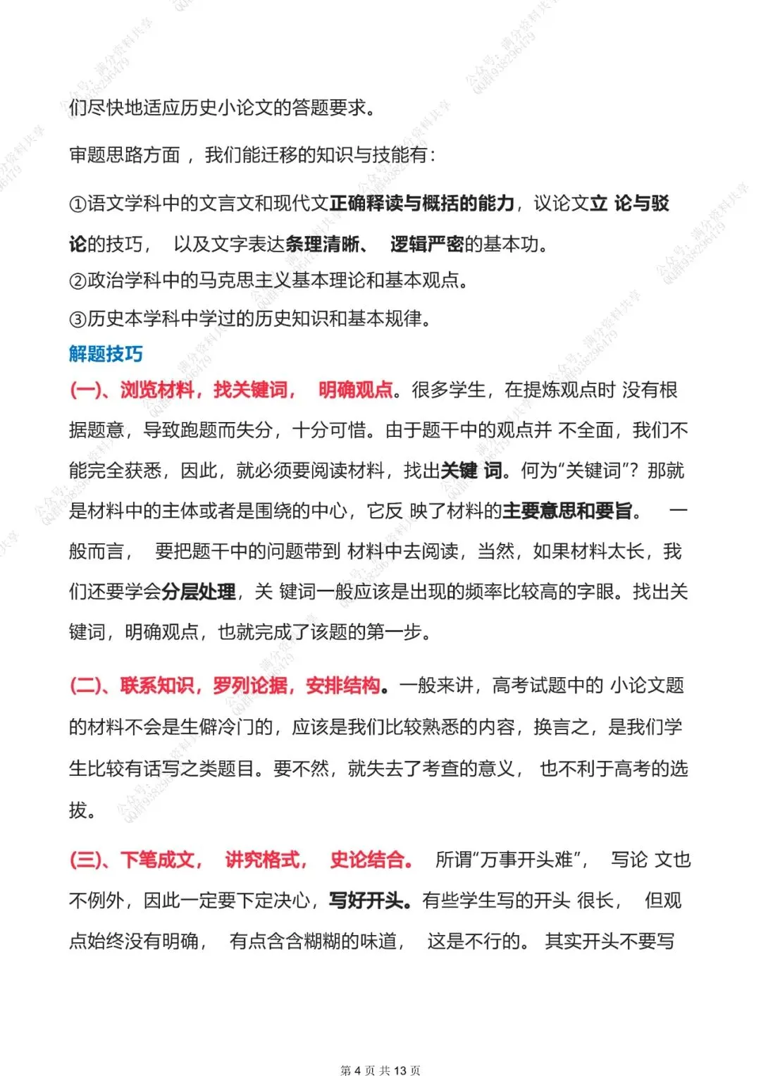 高考历史各类型历史小论文全攻略(pdf分享) 点击图片可观看高清版,文末有获取打印版方式 (完整版13页,部分展示) 领取完整电子版: ①:点一点右下角的“赞”和“在看”,感谢! ②:点击“关注”回复“高中资料”获取资料 点击下方“公众号”关注,可以进入主页哦!